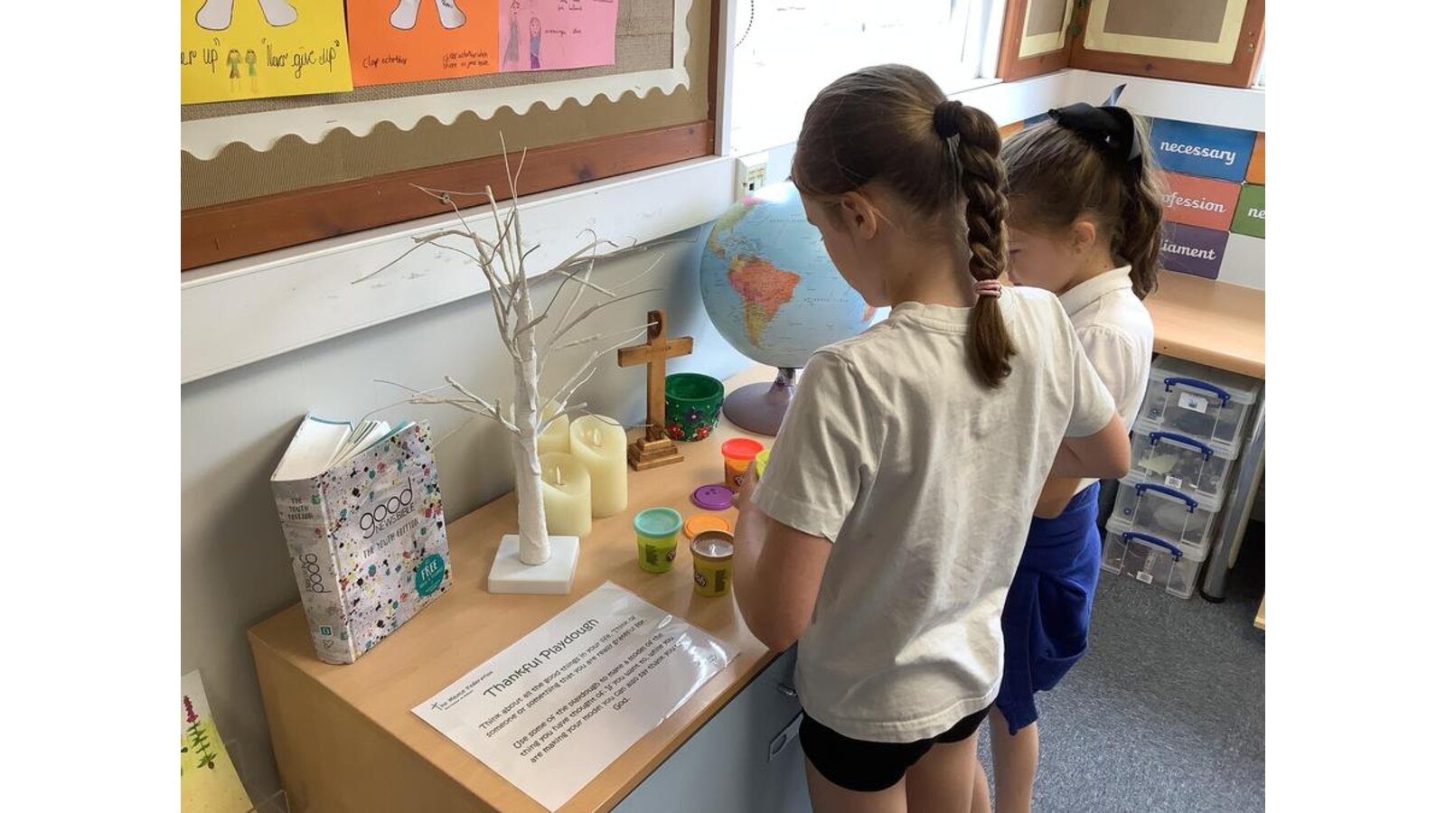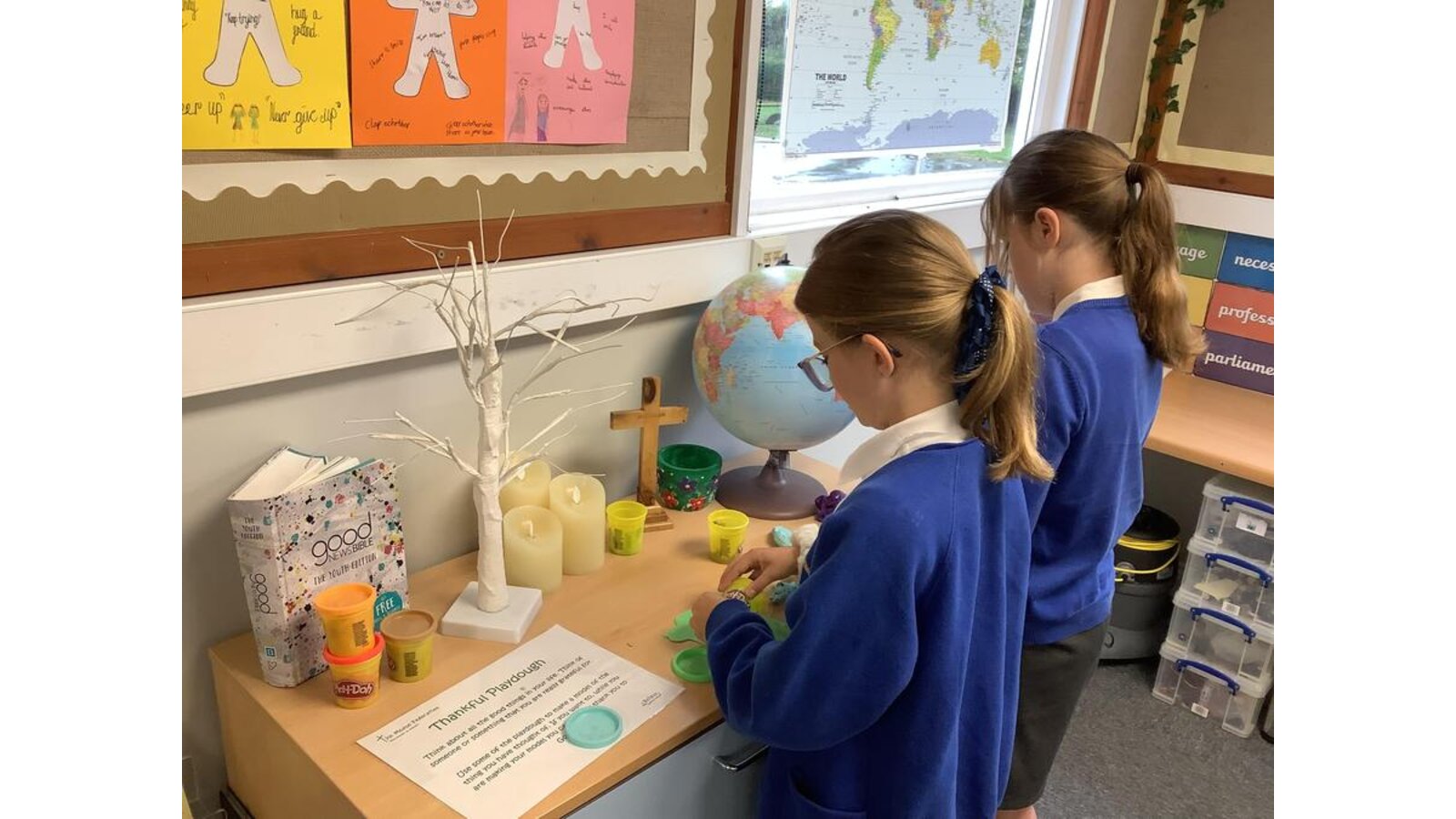 It has been wonderful to see children engaging with our new classroom reflection area already this year! Our activity involved making a model of someone or something that we are thankful for using playdough.