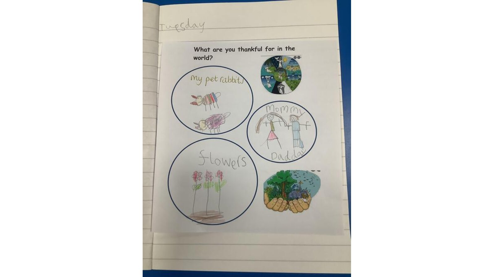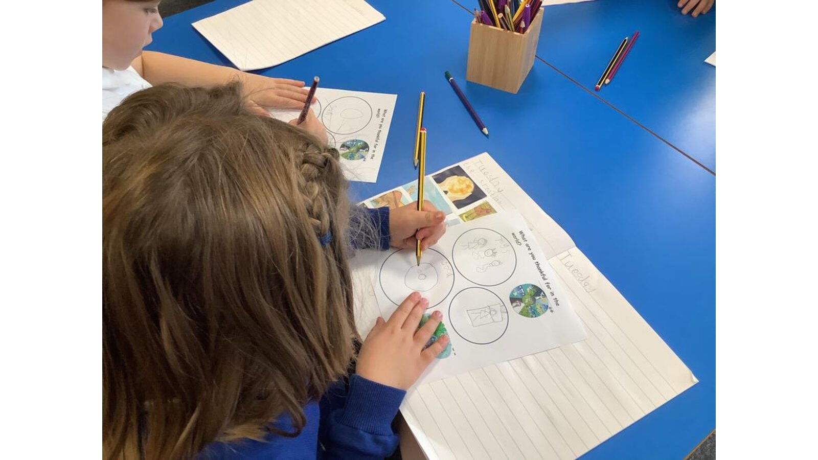 In RE today we discussed God the creator and how Christians praise and say thanks for the world. We all thought about things we are thankful for.