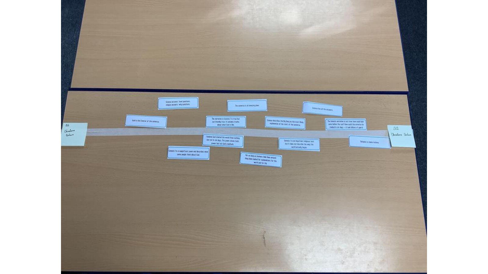 In RE this week, Class Three used their wisdom to make links between religion and faith. They placed statements on a continuum that had ‘All Christians Believe’ one end and ‘No Christians Believe’ at the other end. We had some really rich discussions where the children used their newly acquired knowledge to justify their opinions.