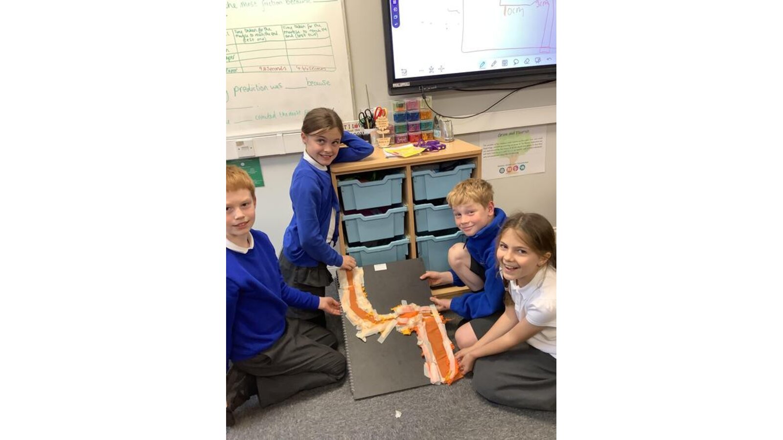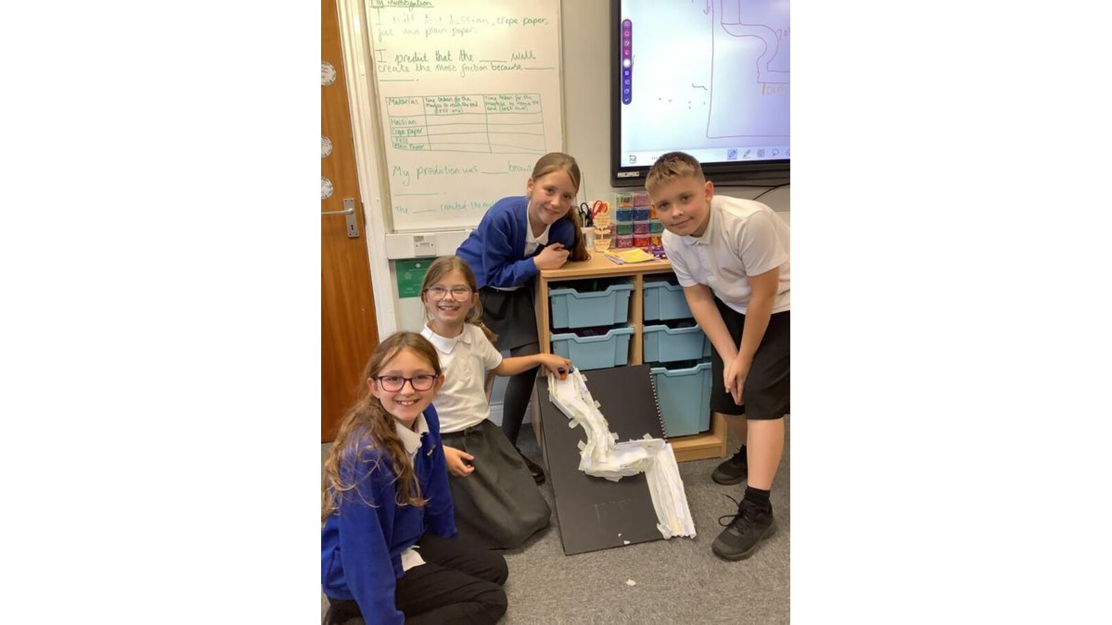 In Science this week, Class Three investigated the effects of friction. We learned that friction is a force that acts on moving objects and it also generates heat! The children created their own marble runs and predicted which material they thought would create the most friction, therefore slowing down the ball the most. We wrote ‘er’ sentences to show the relationship between different surfaces and friction.