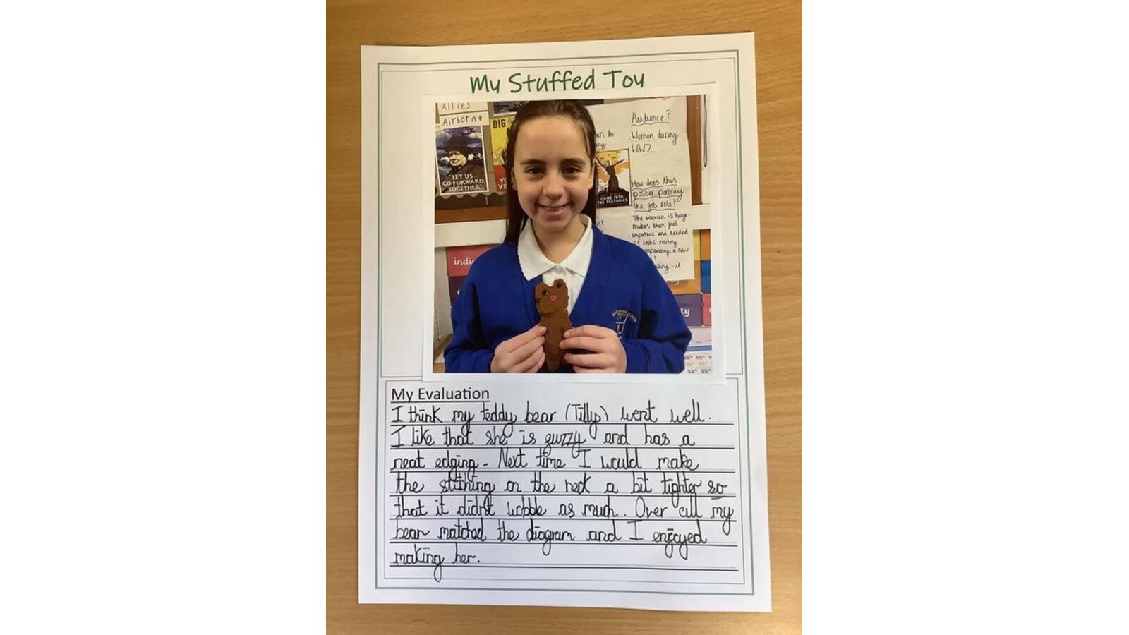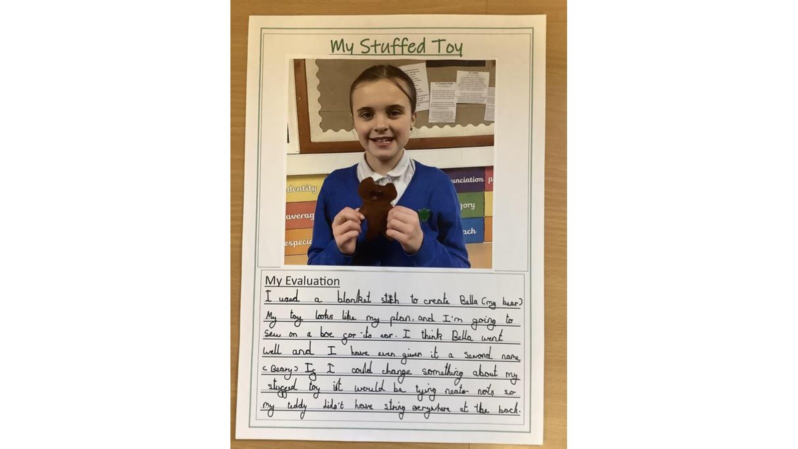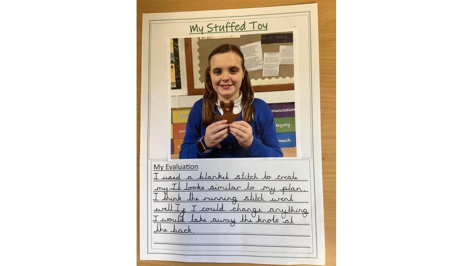 In DT this week, Class Three finished their unit of learning by evaluating their stuffed toys. The children thought about what went well and what they would change next time if they had the chance. They also looked back and reflected on their original plans to see if their outcome closely followed the plan or was adapted along the way. Well done Class Three!
