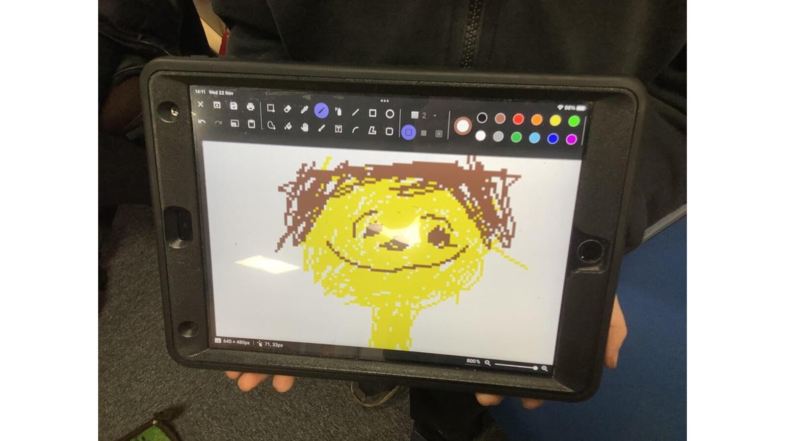 In Computing today we used a paint program on the iPads to create some self-portraits. We used a variety of tools to complete our images. Can you guess who we are?