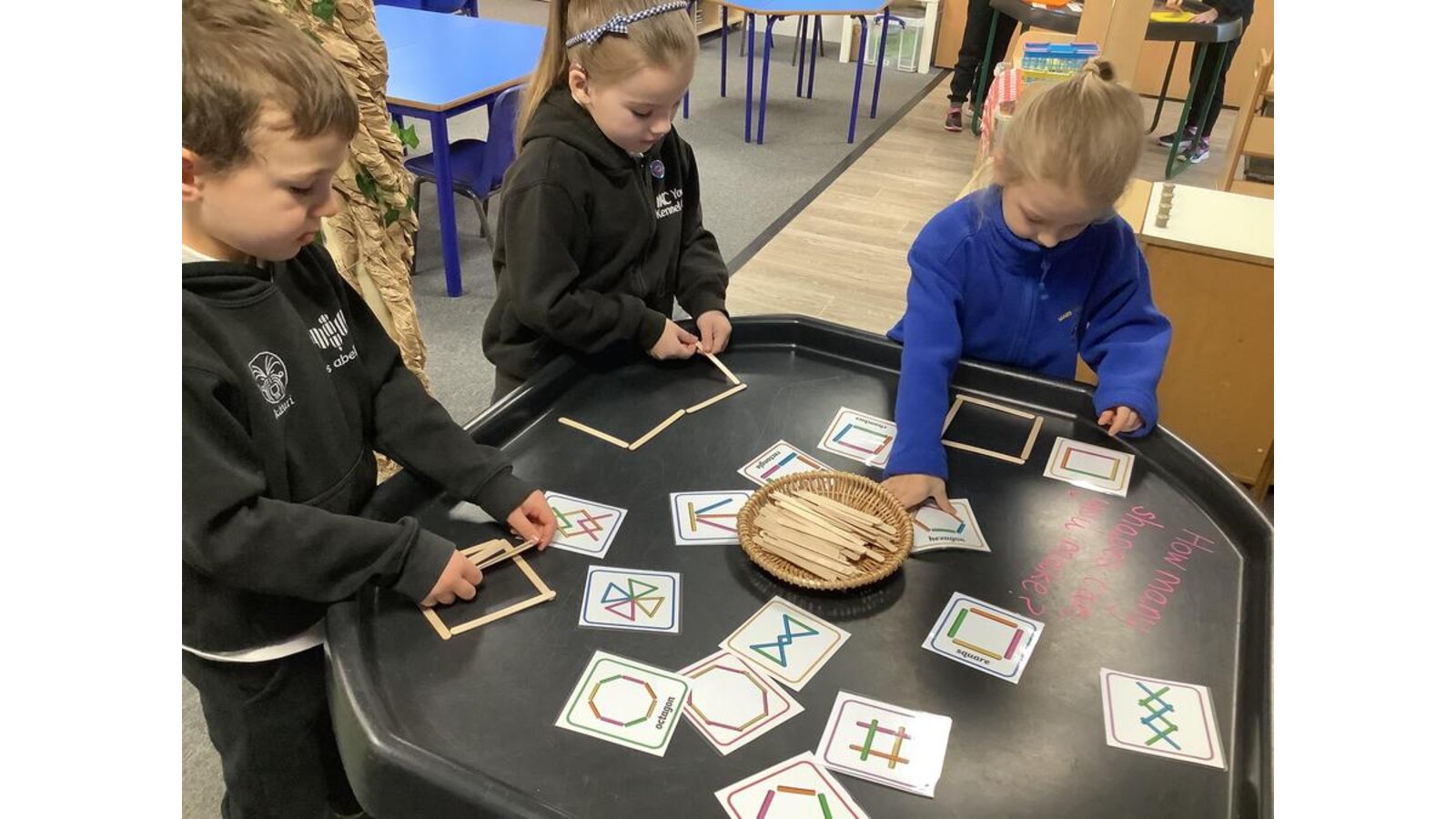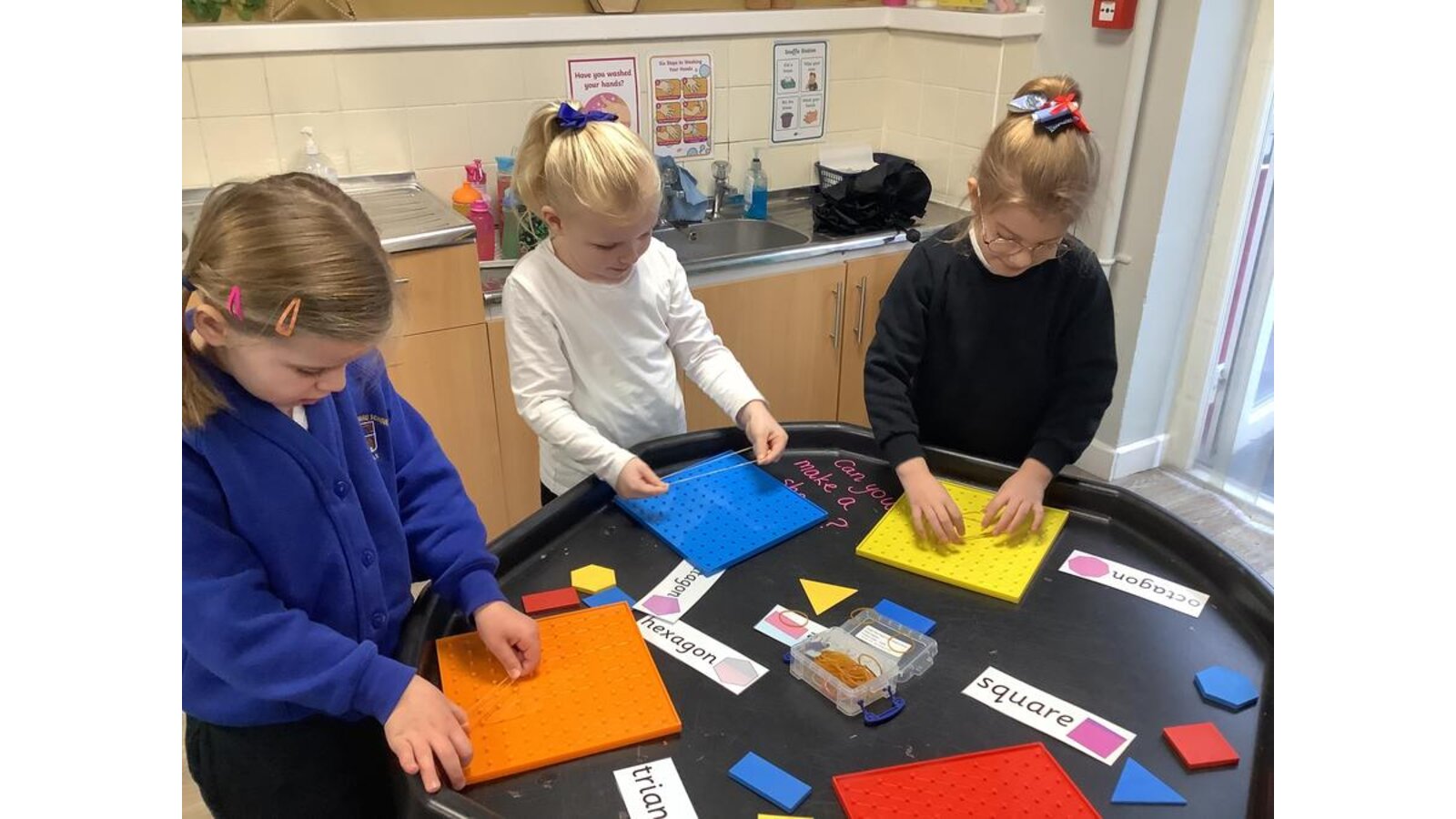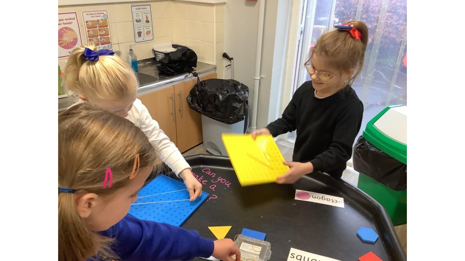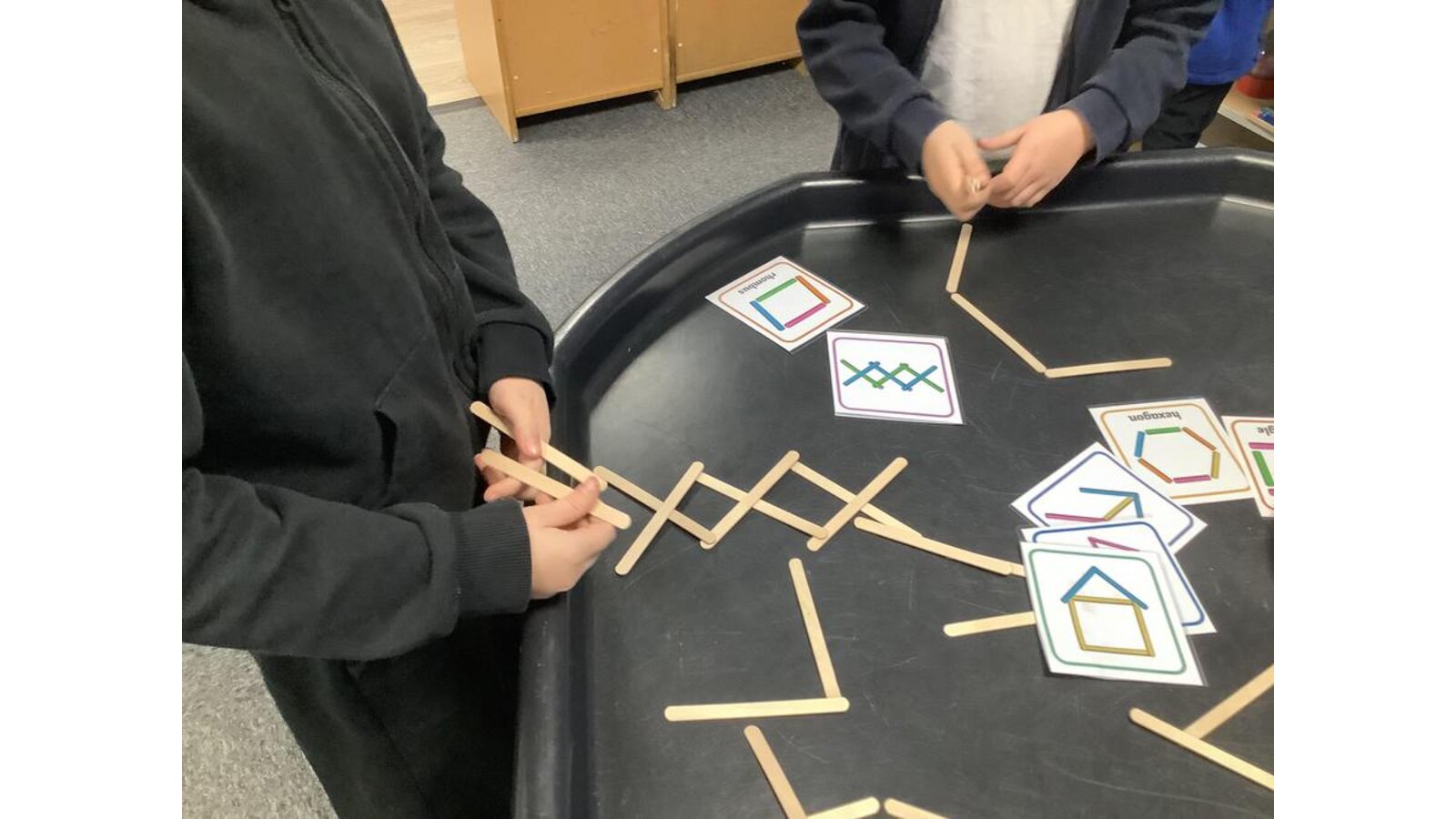 Our new maths topic is all about shape. We have been busy working together and creating shapes in different ways, developing our mathematical language skills.