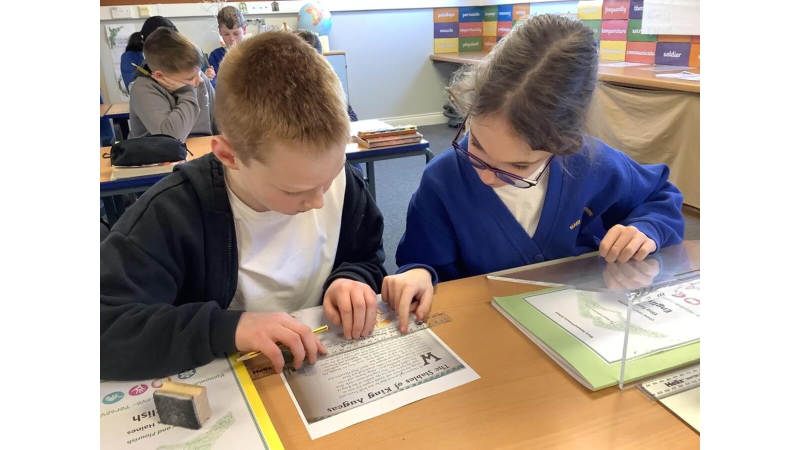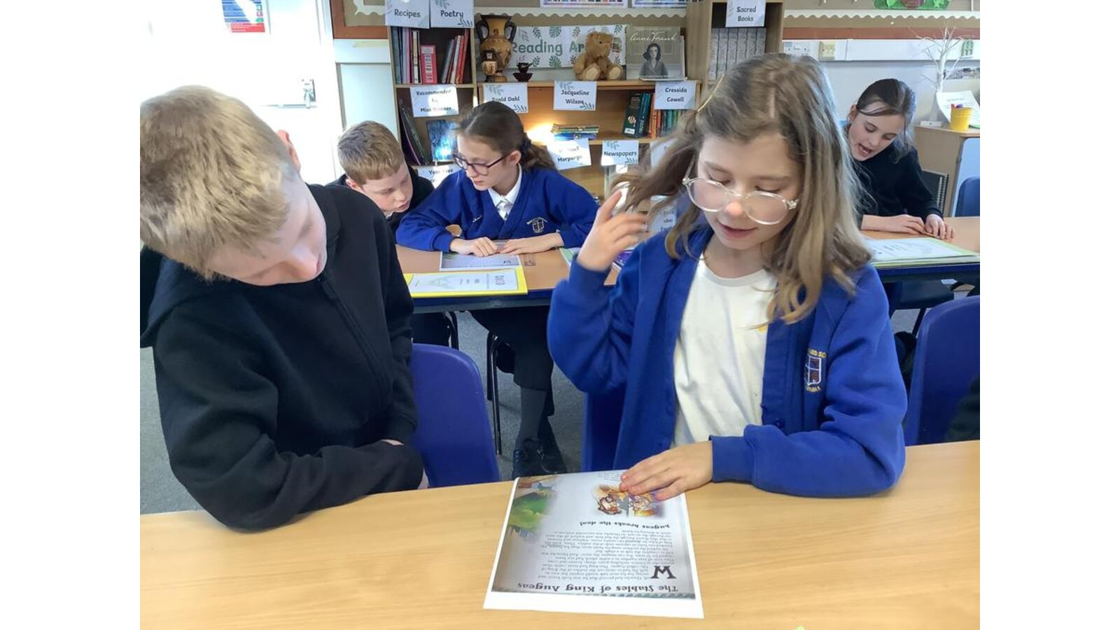 Our reading lesson on Monday focused on fluency. We used model, echo and choral reading to accurately read the fifth labour that Heracles completed, after identifying and defining unfamiliar language. The children read the passage again with their partners using our reading skills. Some children were flourishing and even volunteered to model how to read extracts from the passage to the class!
