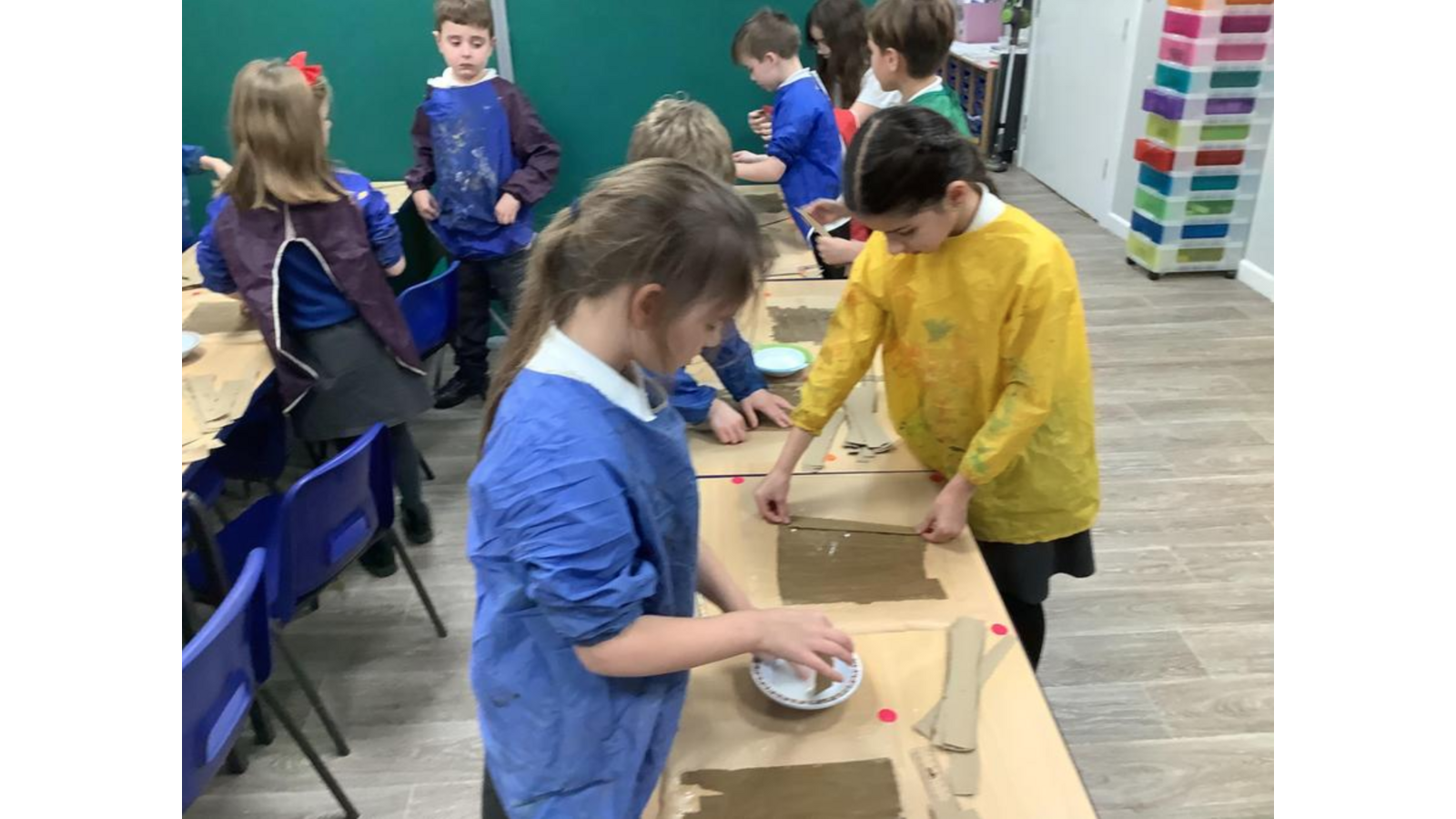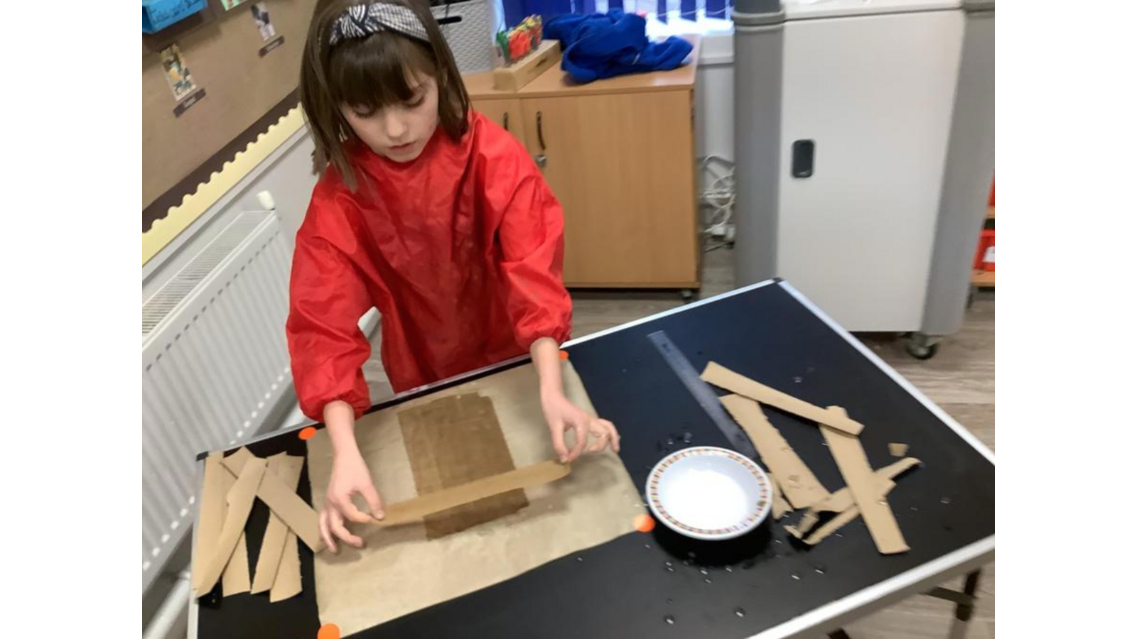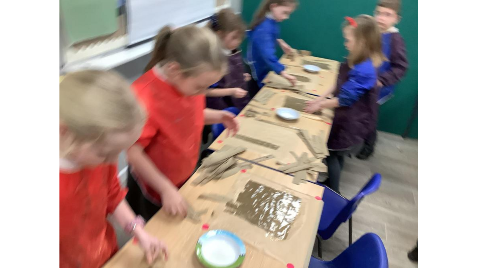 A very messy afternoon. We have used strips of parcel paper with glue to create papyrus like paper ready for our Egyptian art next week.