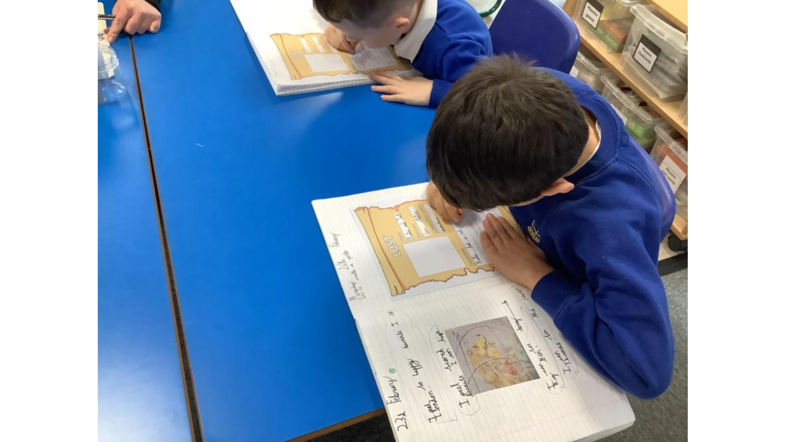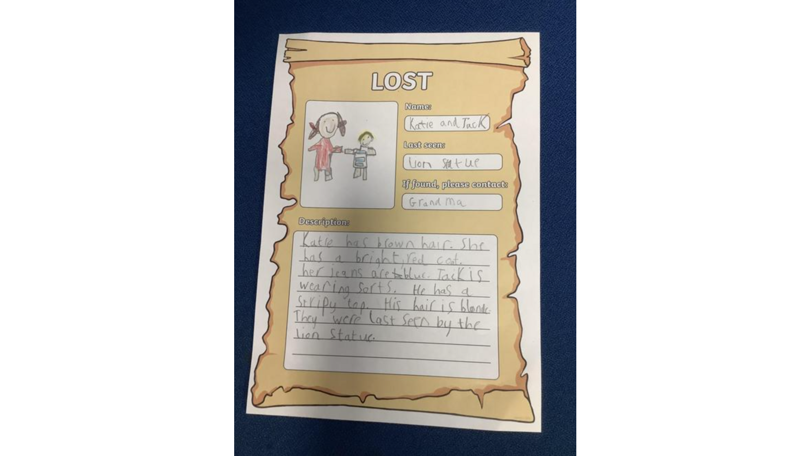 Our English text is “Katie in London.” We have been busy creating missing posters about Katie and Jack. We used a range of adjectives to describe them.