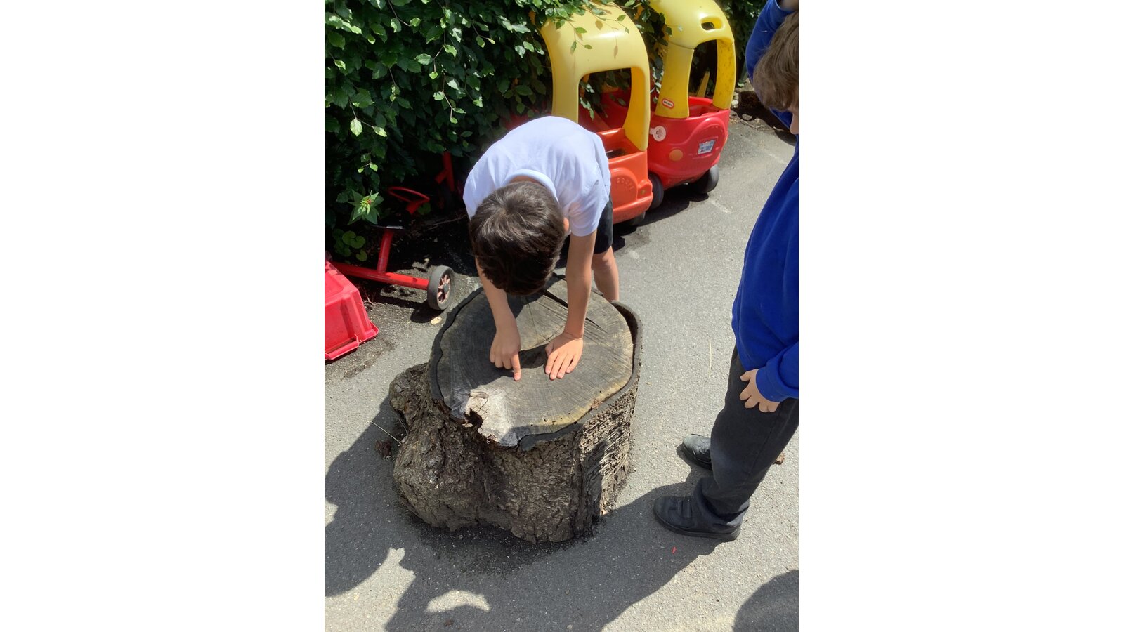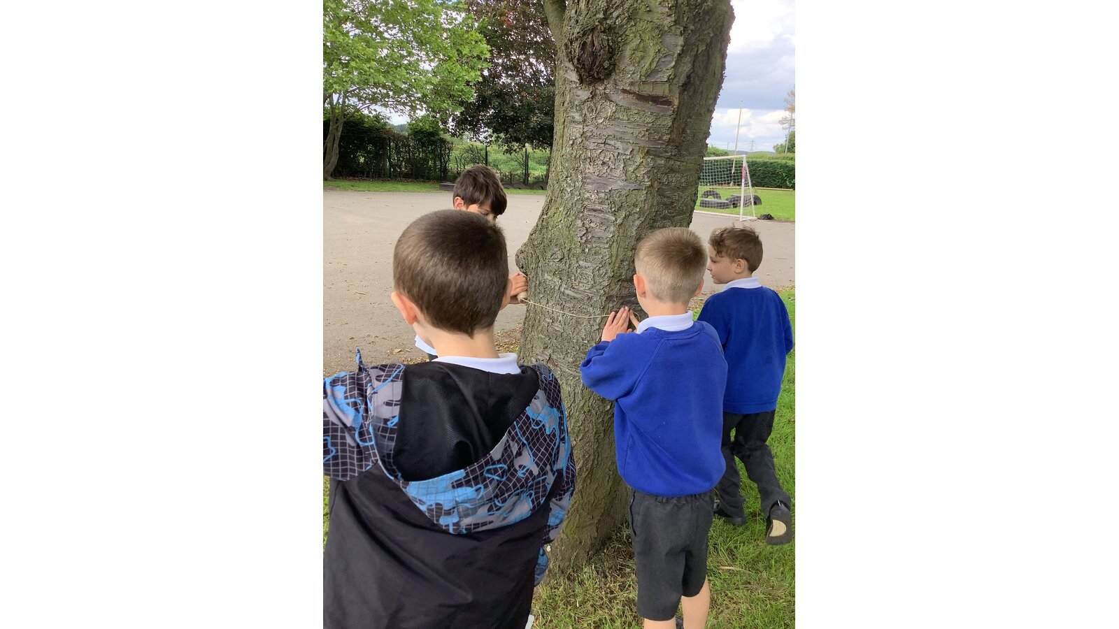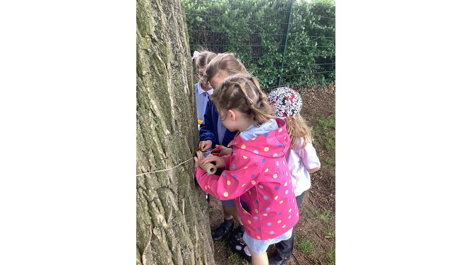 We were inspired by “The Oak Tree” by Julia Donaldson to continue to investigate seasonal changes and our outdoor environment. We looked at the life cycle of an oak tree to find out how they grow. Then we measured the trunks of trees in our playground with string and looked for patterns.