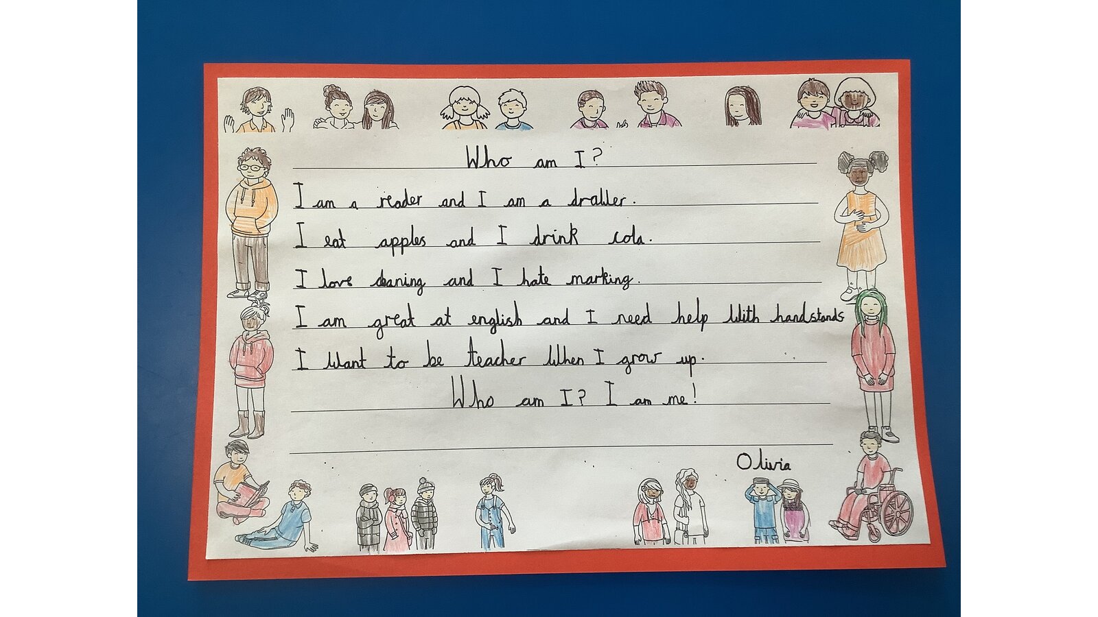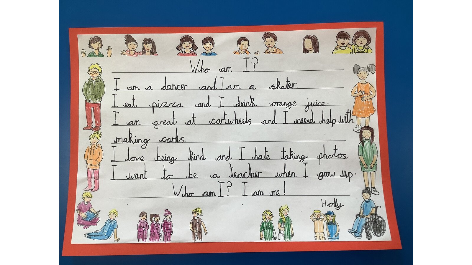 Year 2 have been thinking about what makes them unique to create Who am I? poems. We celebrated what makes us special and some of the children are now using handwriting pens for writing too!