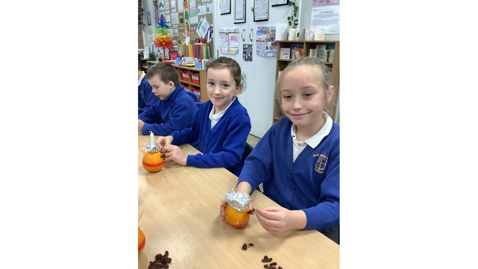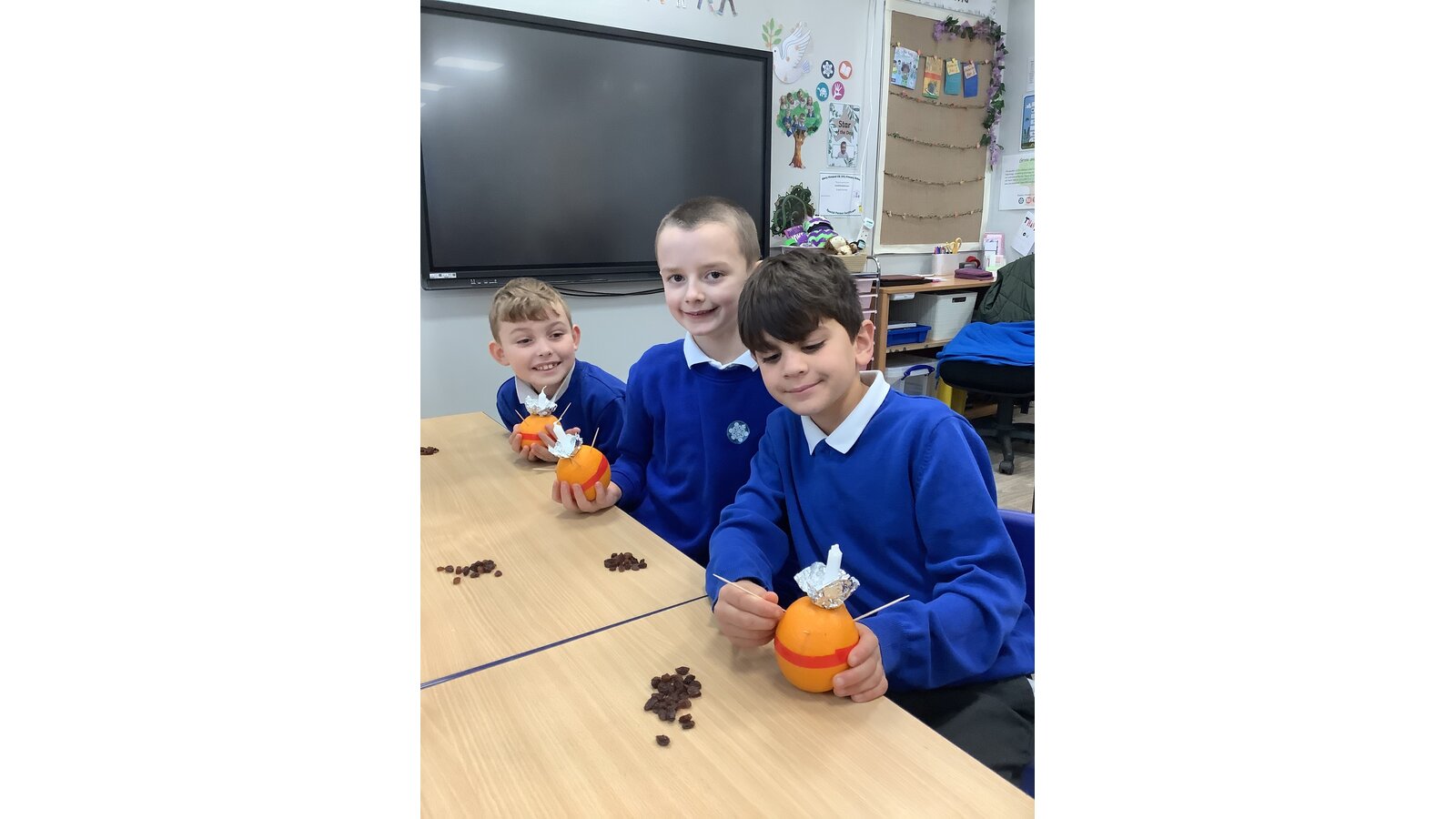 Class Three joined with the other classes in school to prepare for our Christingle service. The children worked together to construct their oranges for our church service. Whilst doing so, we discussed the meanings of each component and the importance of this symbol of light during Advent!