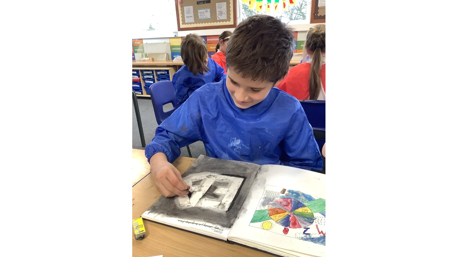 In Art, Class Three learned about the technique, chiaroscuro. We applied this technique to create tone and strong contrasts between light and dark. As we are learning about the Maya civilisation in English and History, the children chose a month from the Maya calendar and created the illusion of a three-dimensional structure.