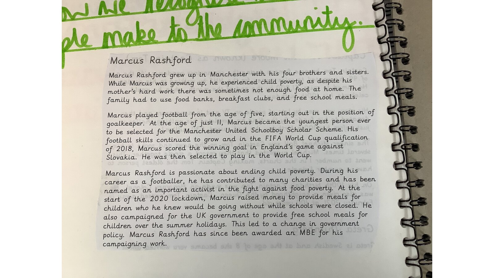 In PSHE, Class Three recognised and valued the contribution that people make to the community. We explored three inspirational individuals and the children wrote questions they would like to ask in an interview to learn more about their contributions to the community. The children then used role-play to ask and answer their questions using the fact profiles provided!