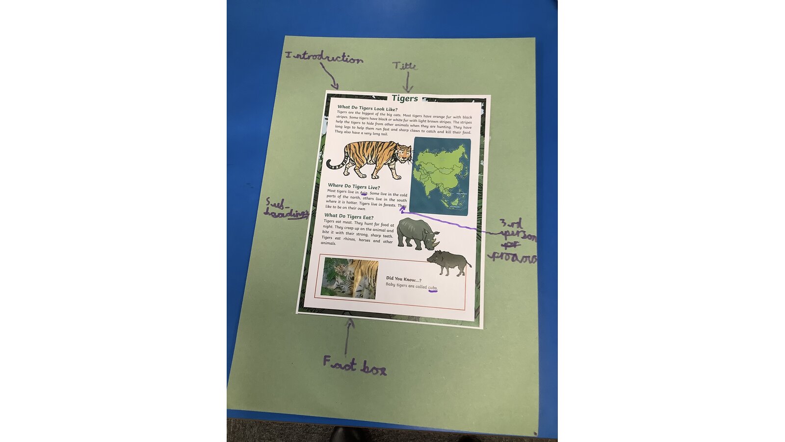 We have been identifying features of non-chronological reports so that we can create our own about lions, tigers and leopards!