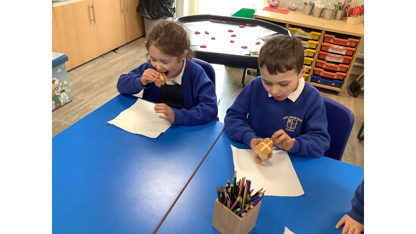25 March 2025 Sarah Orgill Class 1 In RE this week we looked at the symbolism of hot cross buns and why they are eaten at Easter. We could not resist a taste test too! Delicious! Previous Next RE
