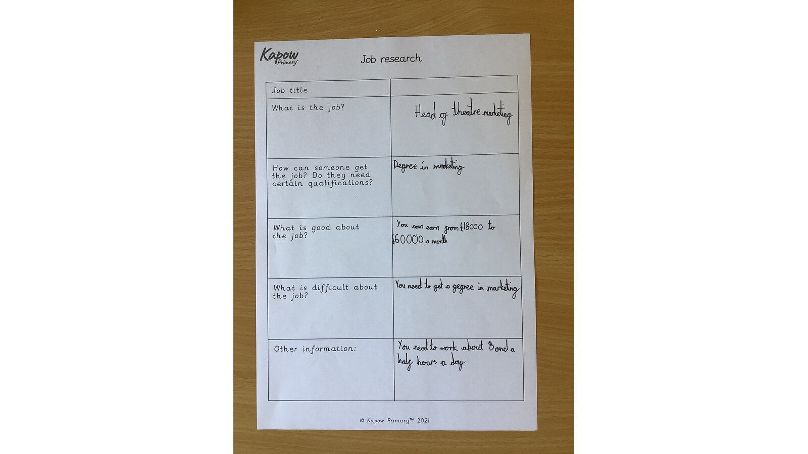 For our final lesson of our ‘Economic Wellbeing’ unit, Class Three learned about different job roles and routes into careers. Year Five children researched a variety of job roles within different fields. Year Six children designed their own pathways into a career of their choice.