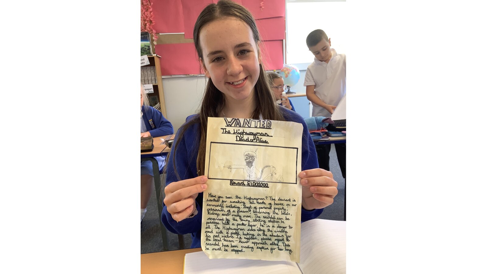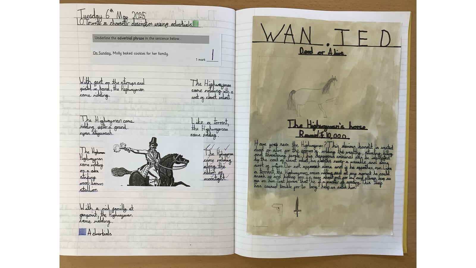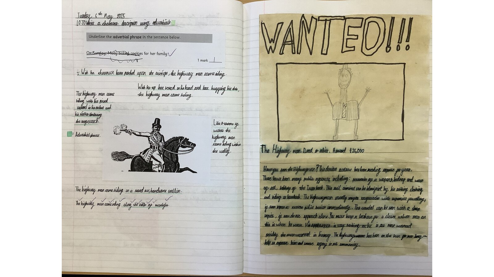 In English this week, Class Three had lots of fun writing character descriptions of the Highwayman in the form of a wanted poster! The children’s SPAG focus this week has been adverbial phrases, we planned and wrote a range of sentences using adverbials in different positions. The children then applied these to their descriptions and will be using them within their next write: a persuasive advert!