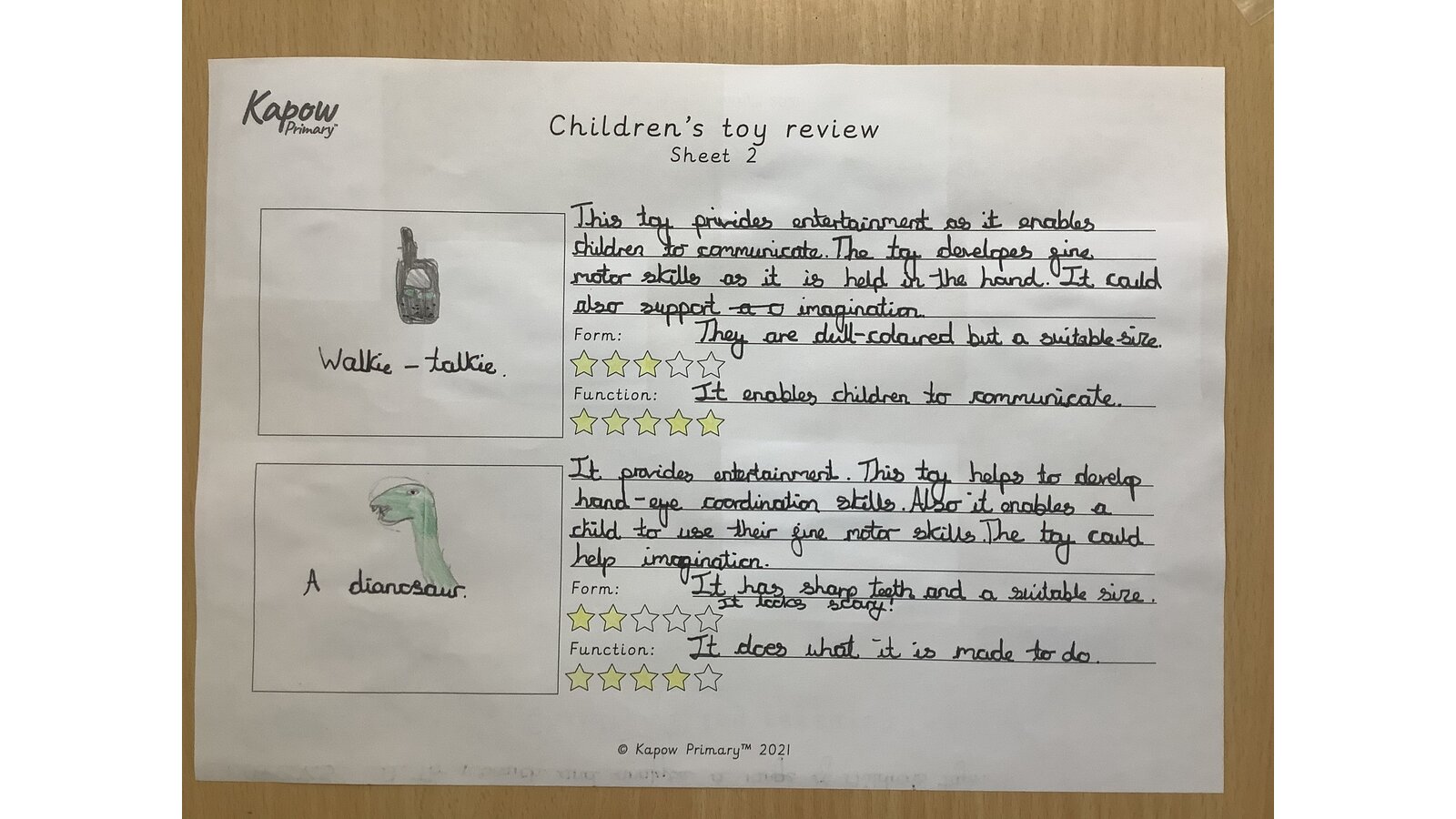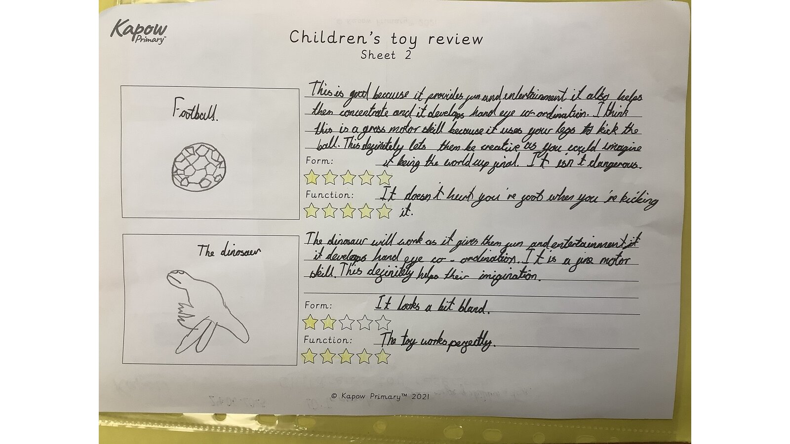 Our first DT lesson involved learning about the difference between ‘form’ and ‘function’. The children in Class Three then explored a range of children’s toys before analysing their functions and forms. We thoughts about whether the toys would support a child’s fine or gross motor skills.