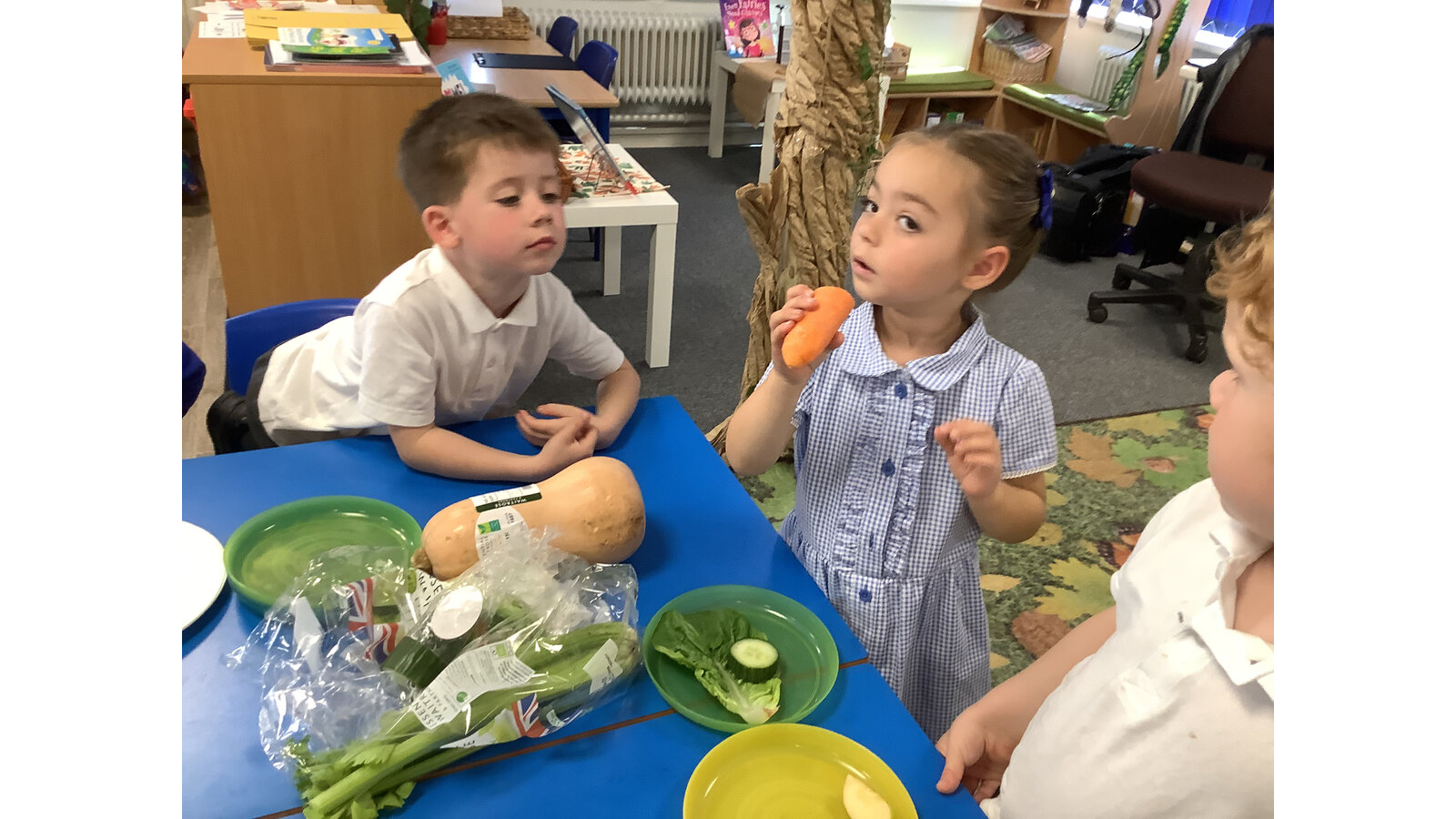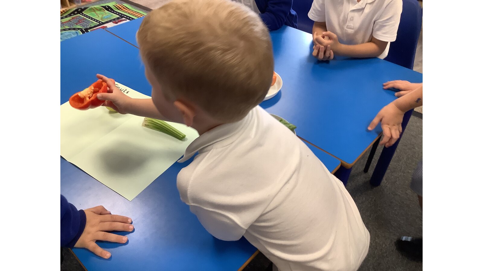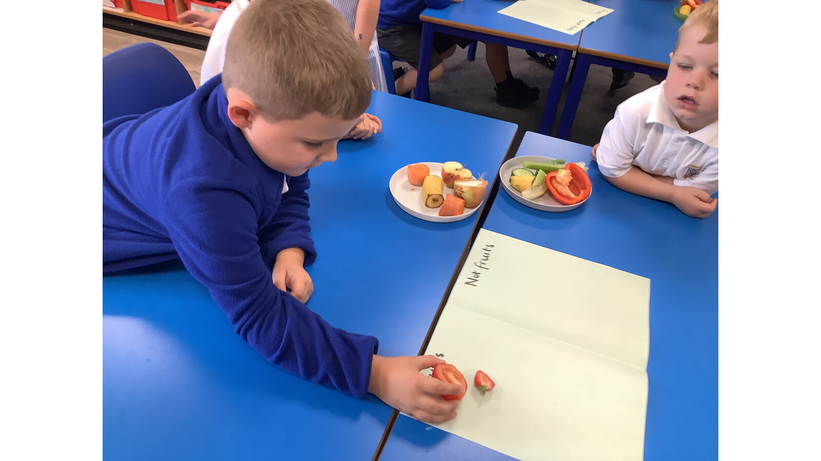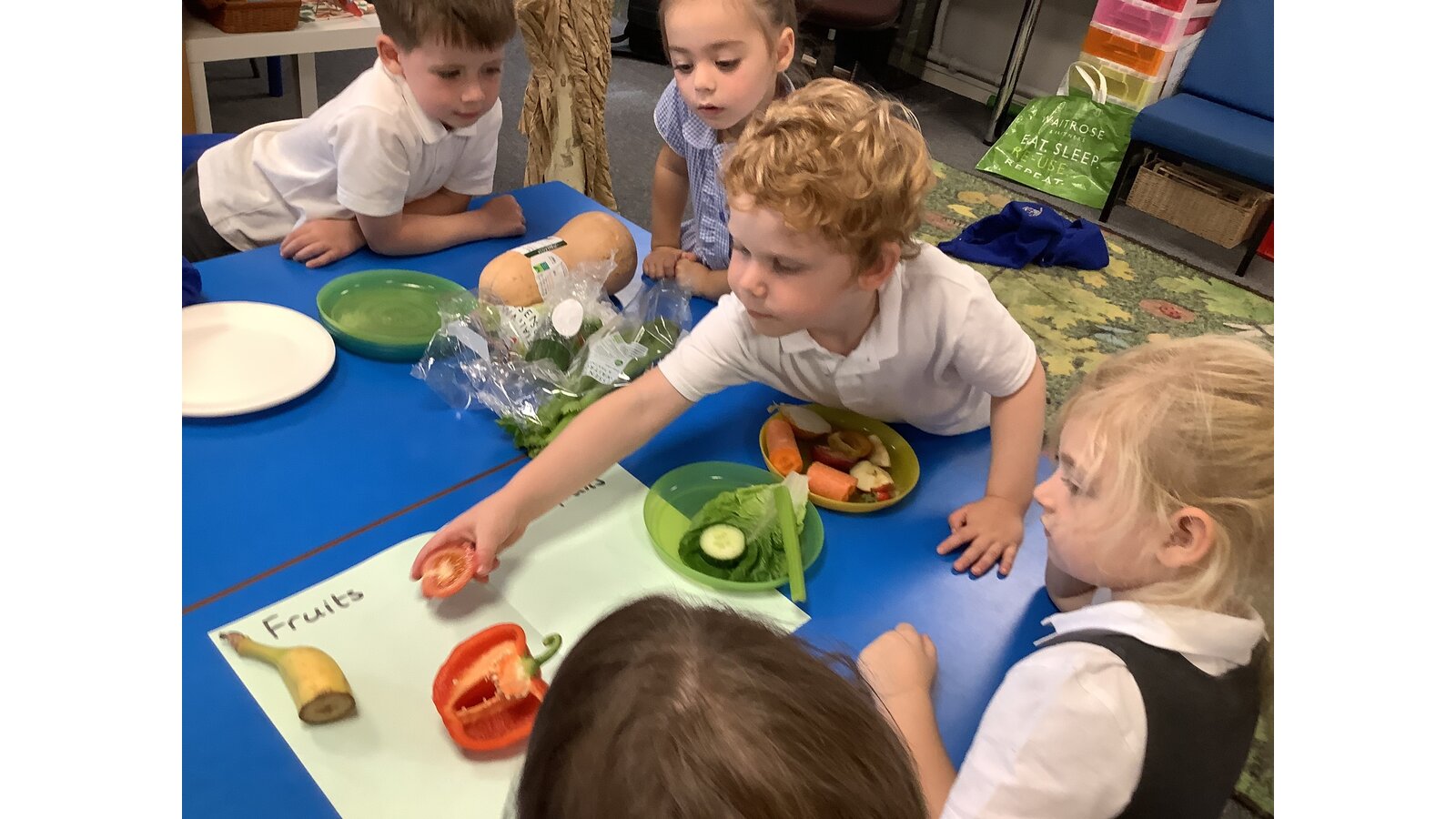 We have been investigating the difference between fruit and vegetables and sorting them.