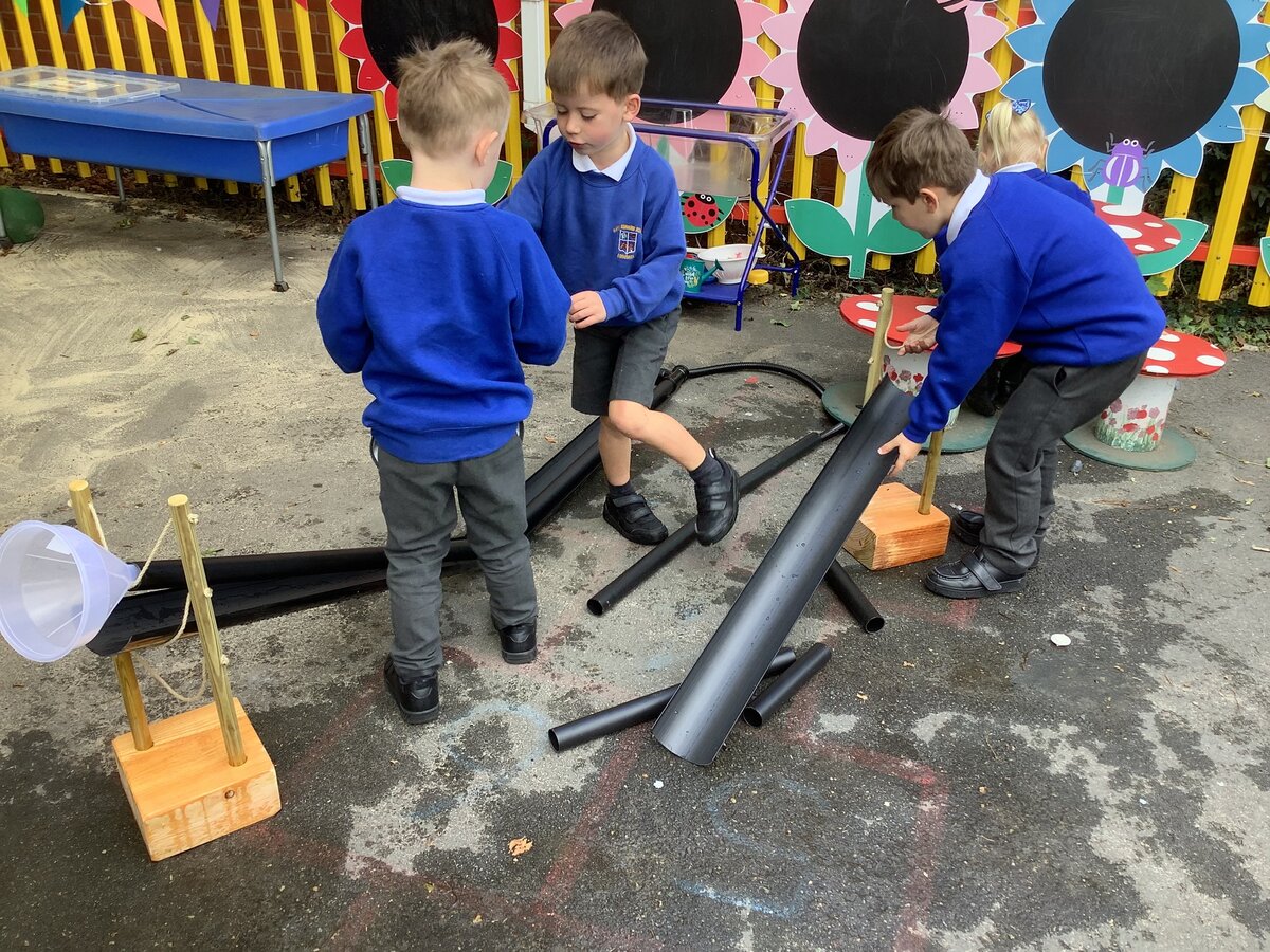 We had a wonderful time in our outdoor area exploring some new equipment to make our own water channels. Some fantastic teamwork and lots of sharing ideas to make the water flow the way we wanted it to!