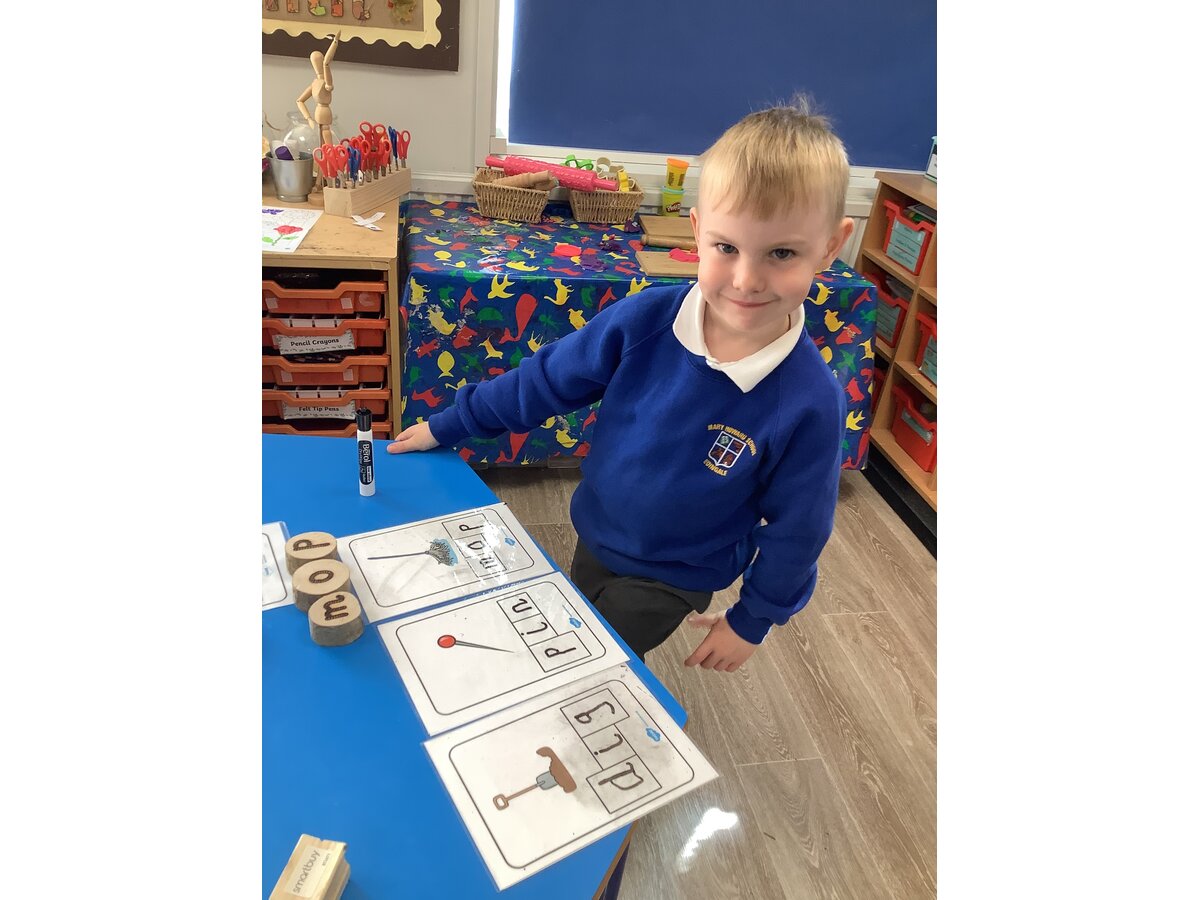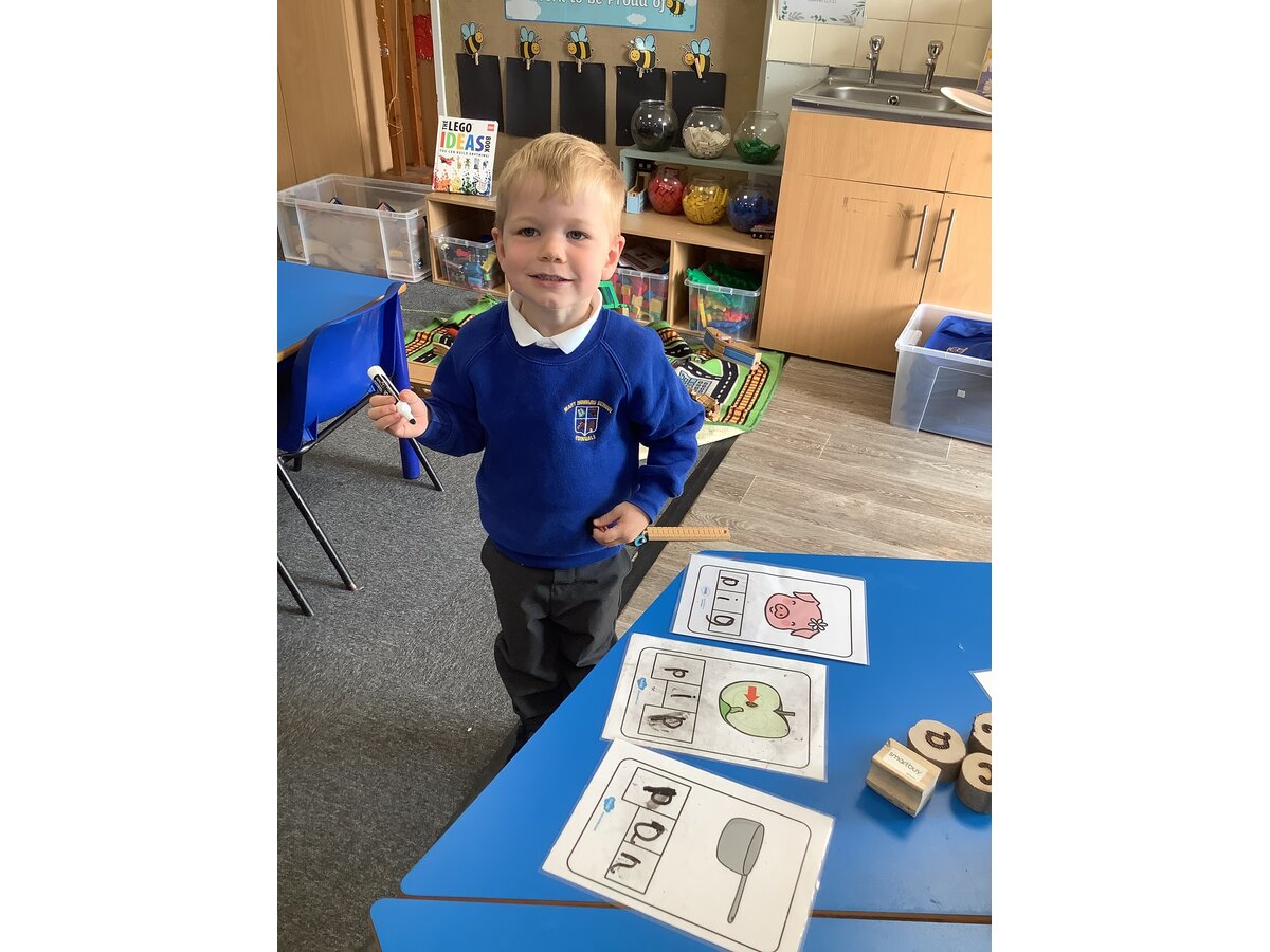 Reception have been busy using their phonics knowledge to segment and blend CVC words with the initial sounds we have explored so far! Fantastic work!