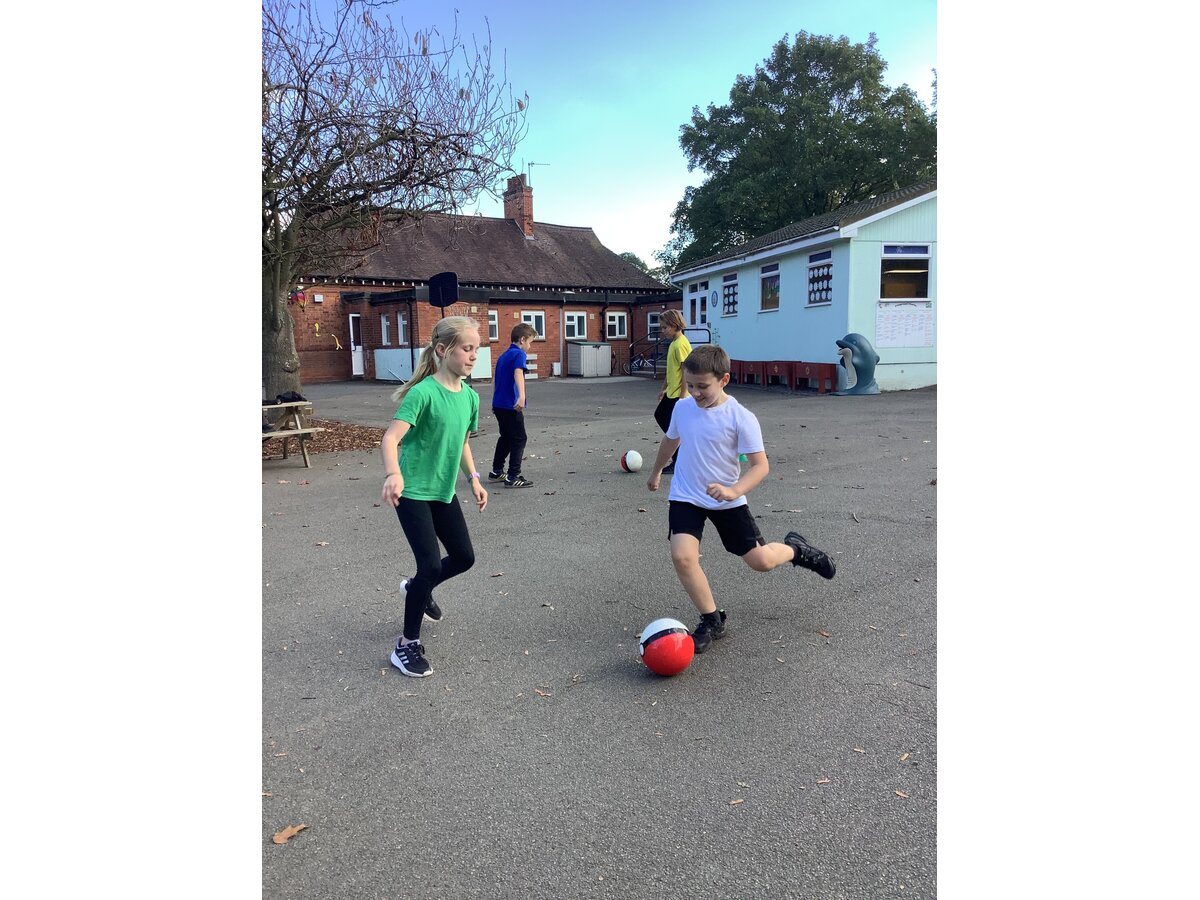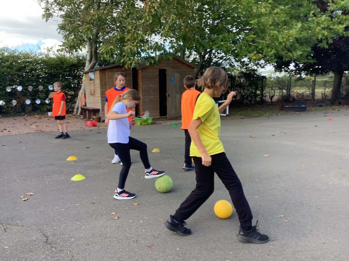 In PE this week, Oak Class communicated to help their team make effective decisions. The children played the roles of attacker to dribble and pass the ball whilst the defenders tried to kick the ball out of play. Super ball skills today!