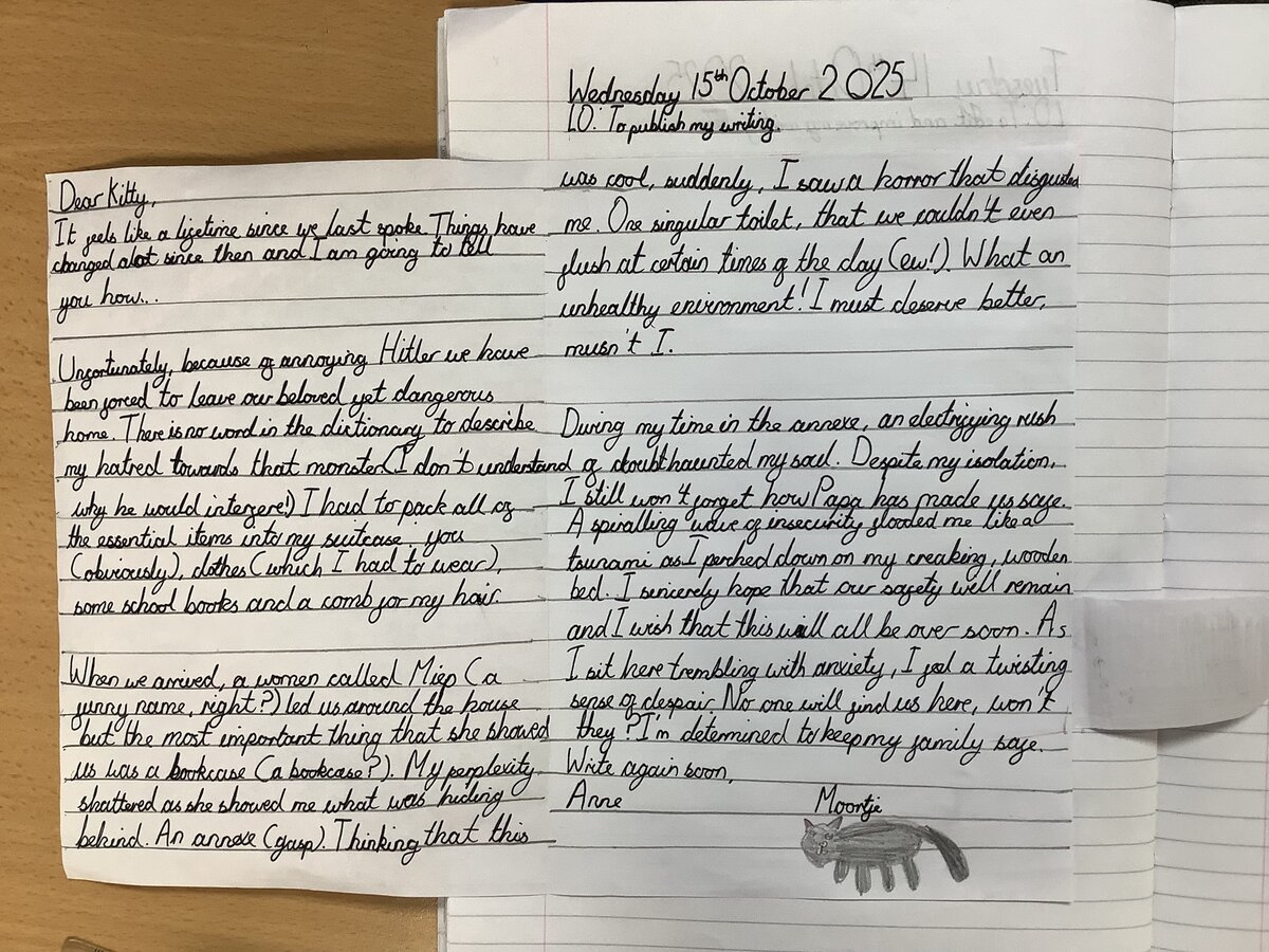 In English, Oak Class had the best time publishing their writing. We created our very own diaries, inspired by Anne Frank and wrote up our edited writing from Anne’s perspective! The children included tag questions to convey a tone of uncertainty (of Anne’s move to the secret annexe) along with brackets for parenthesis to show Anne’s sarcastic yet jovial tone. A fantastic write! Well done, Oak Class!