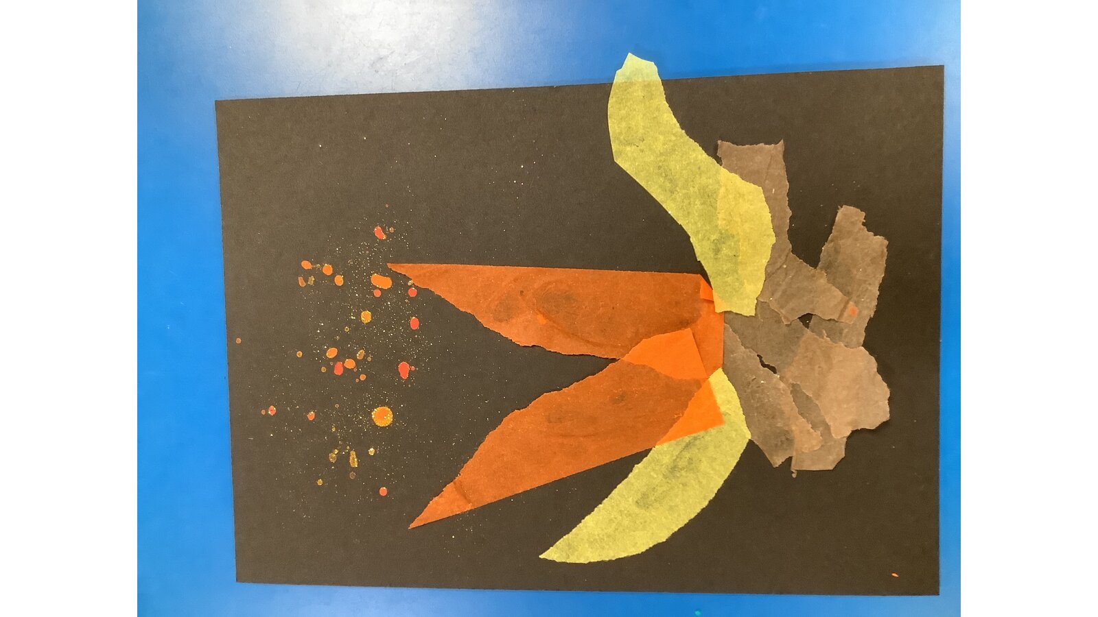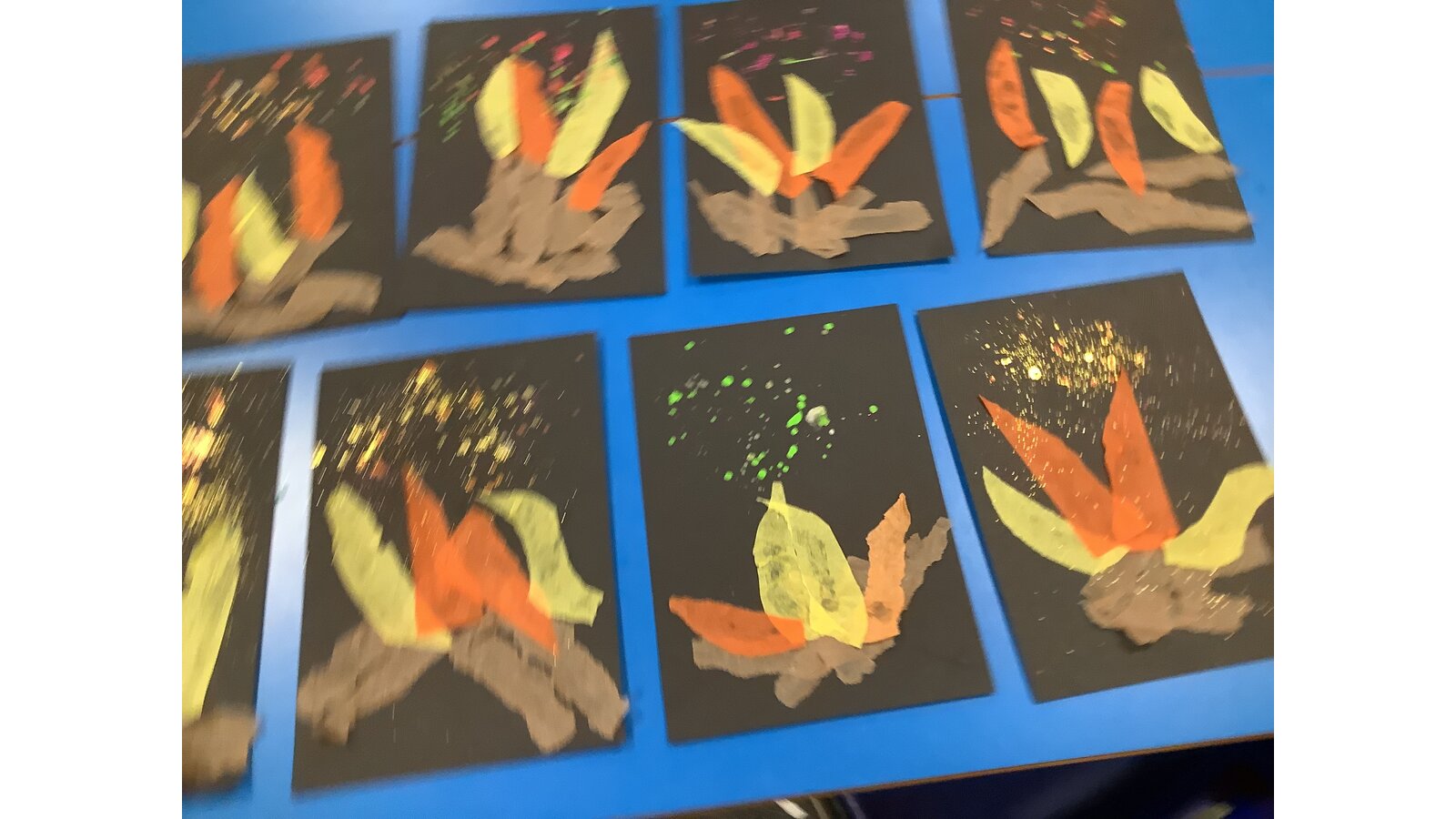 We talked about bonfire and fireworks safety and created our own bonfire pictures using coloured paper, paint and glitter!