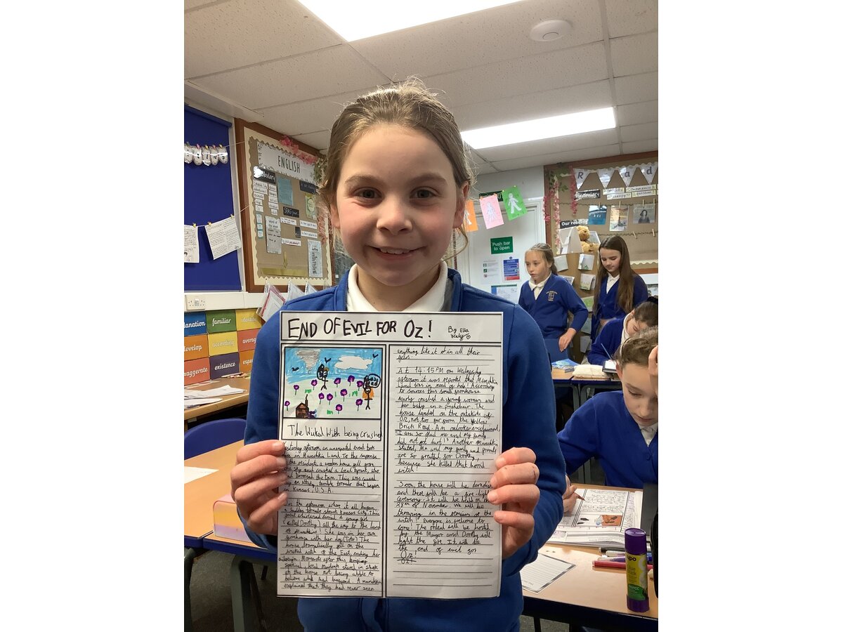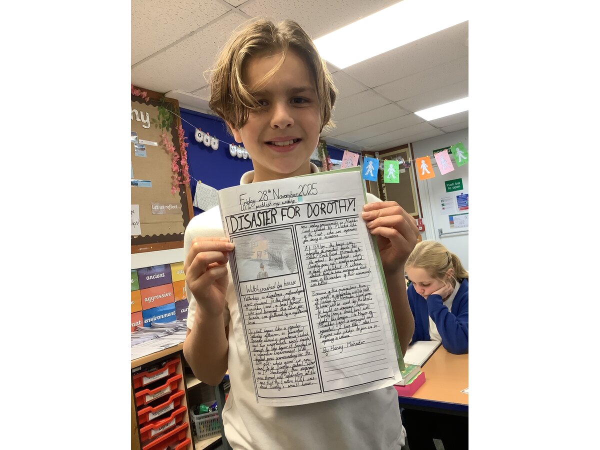 Oak Class have absolutely loved their most recent unit of work in English! The children have been learning about the grammatical features used within newspaper reports before planning and writing their own reports on the terrible tornado that landed Dorothy’s house in Munchkin Land and flattened the Wicked Witch of the East! The class was bubbling with excitement to publish their edited pieces and were so proud of their final write-ups!