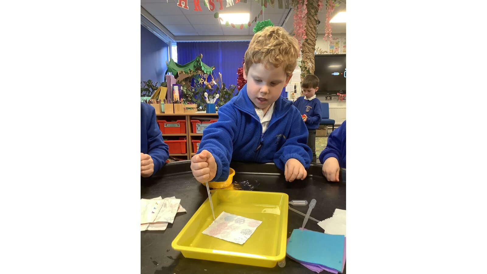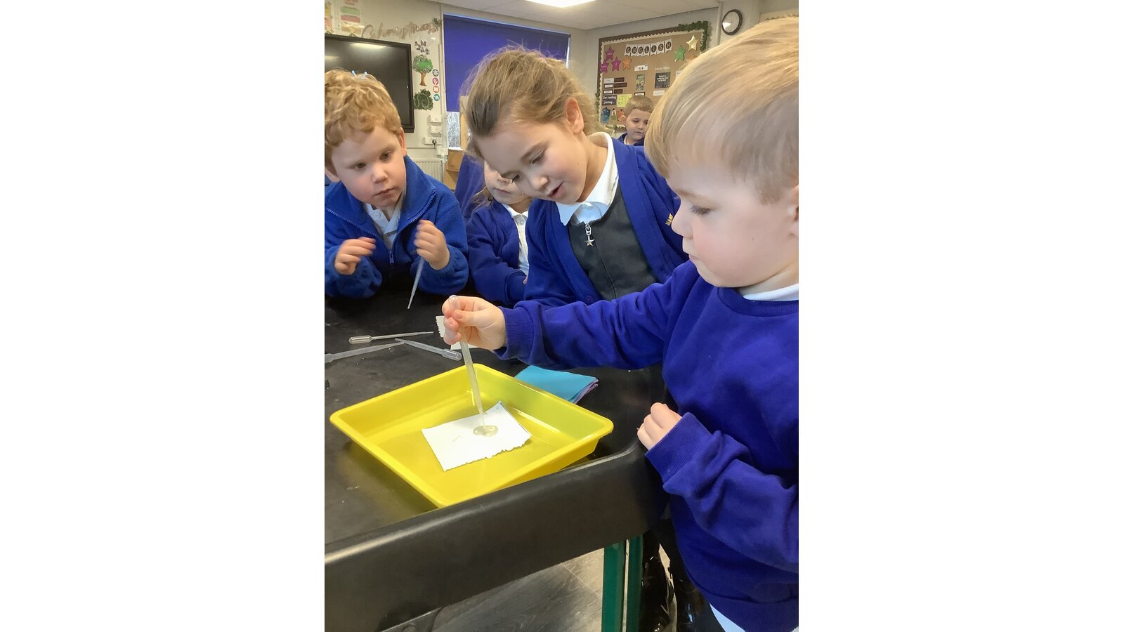 We have been investigating materials in our science lessons. This week, we were given a challenge to help Wise Wizard find a material to clean up some magic potion! We used the pipettes for the first time to make sure we used the same amount of water in our tests. We identified which materials were the most absorbent! Great fun!