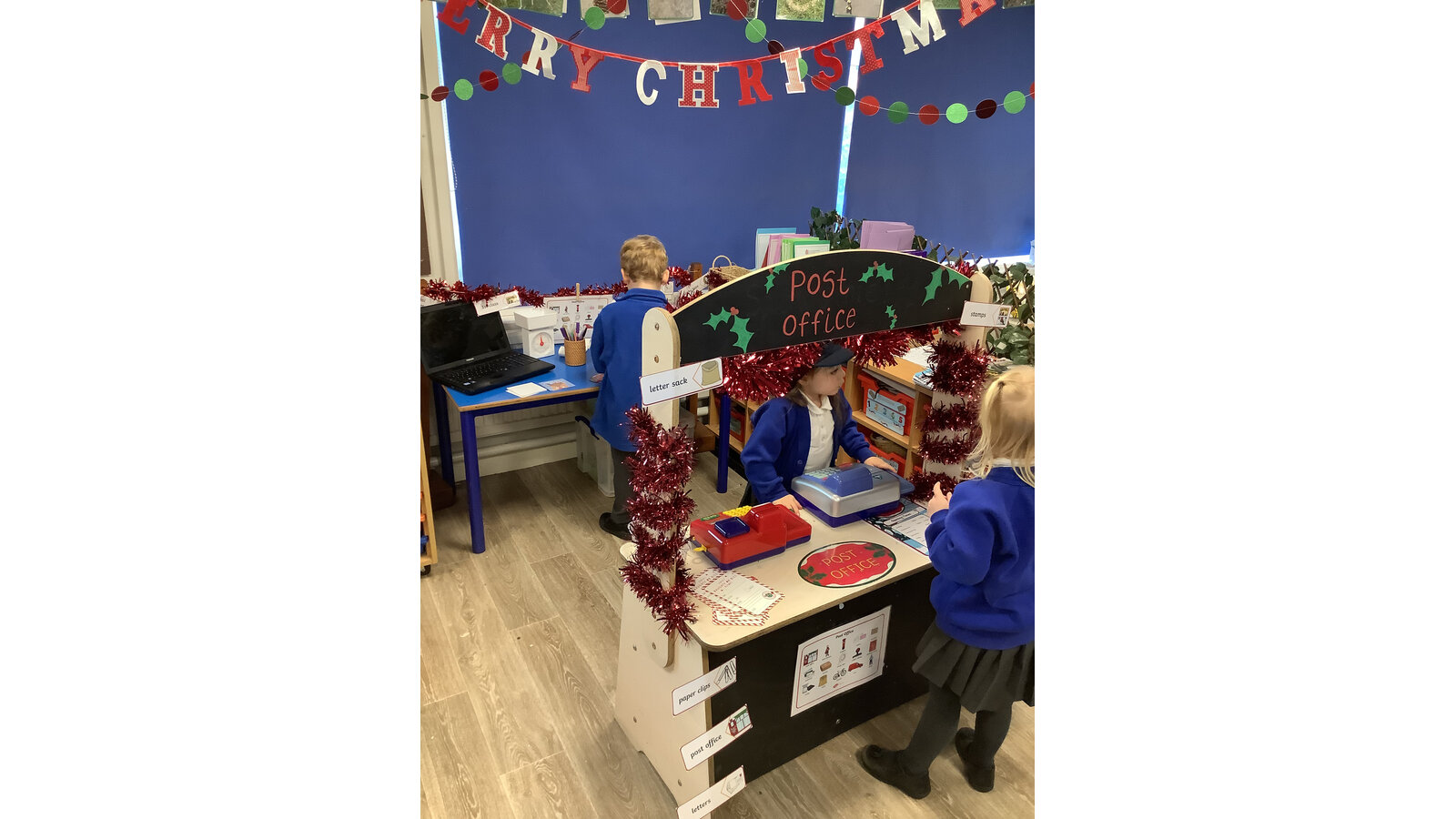 Our enhancements this week have a festive twist! The Christmas Post Office is now open and the children are busy in the office, working on the counter and pretending to be customers with their cards and parcels!