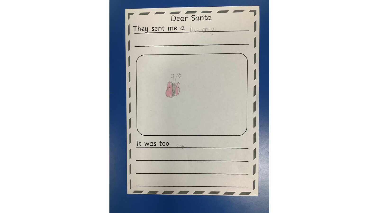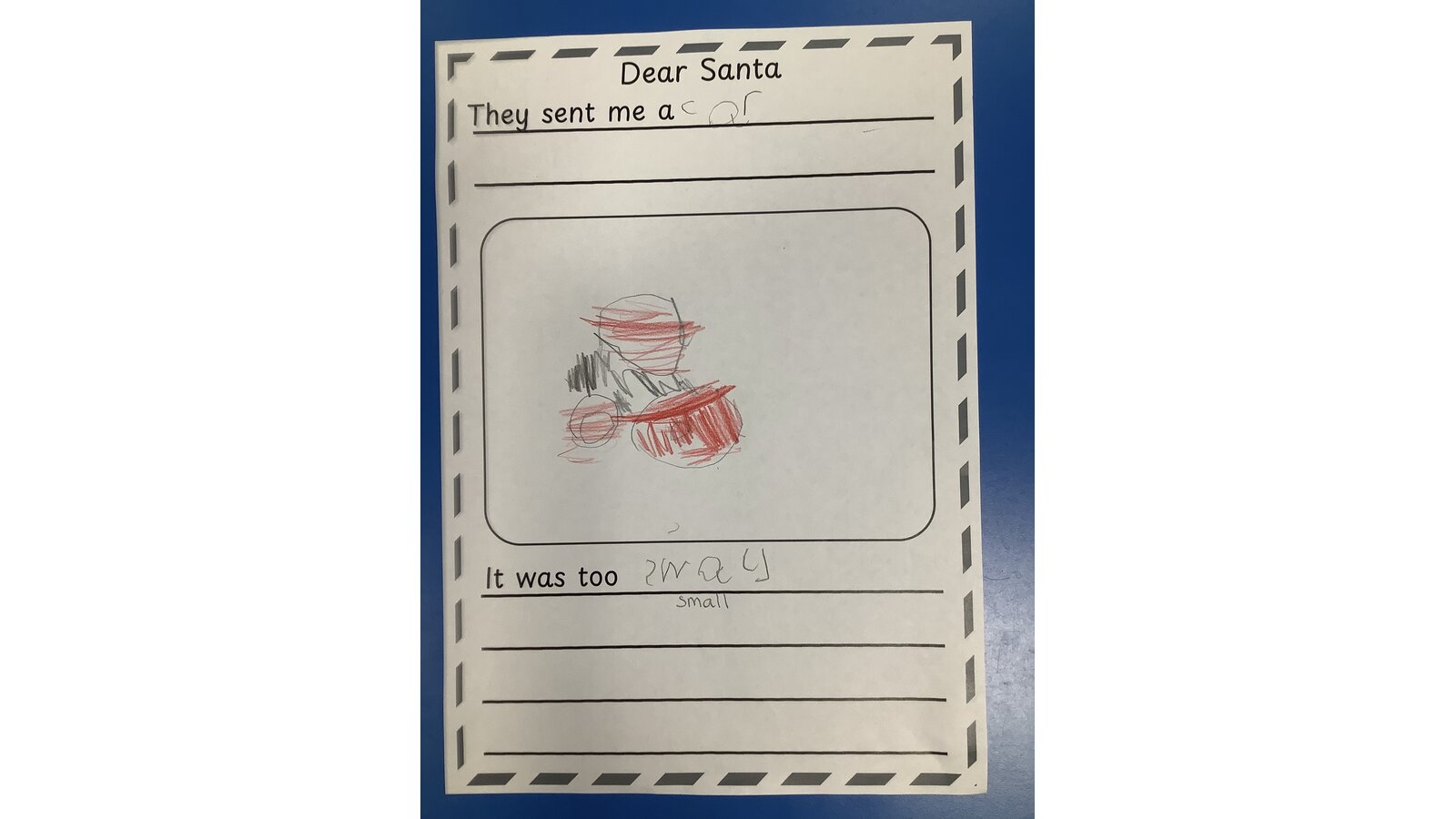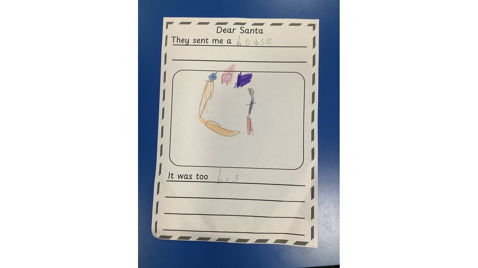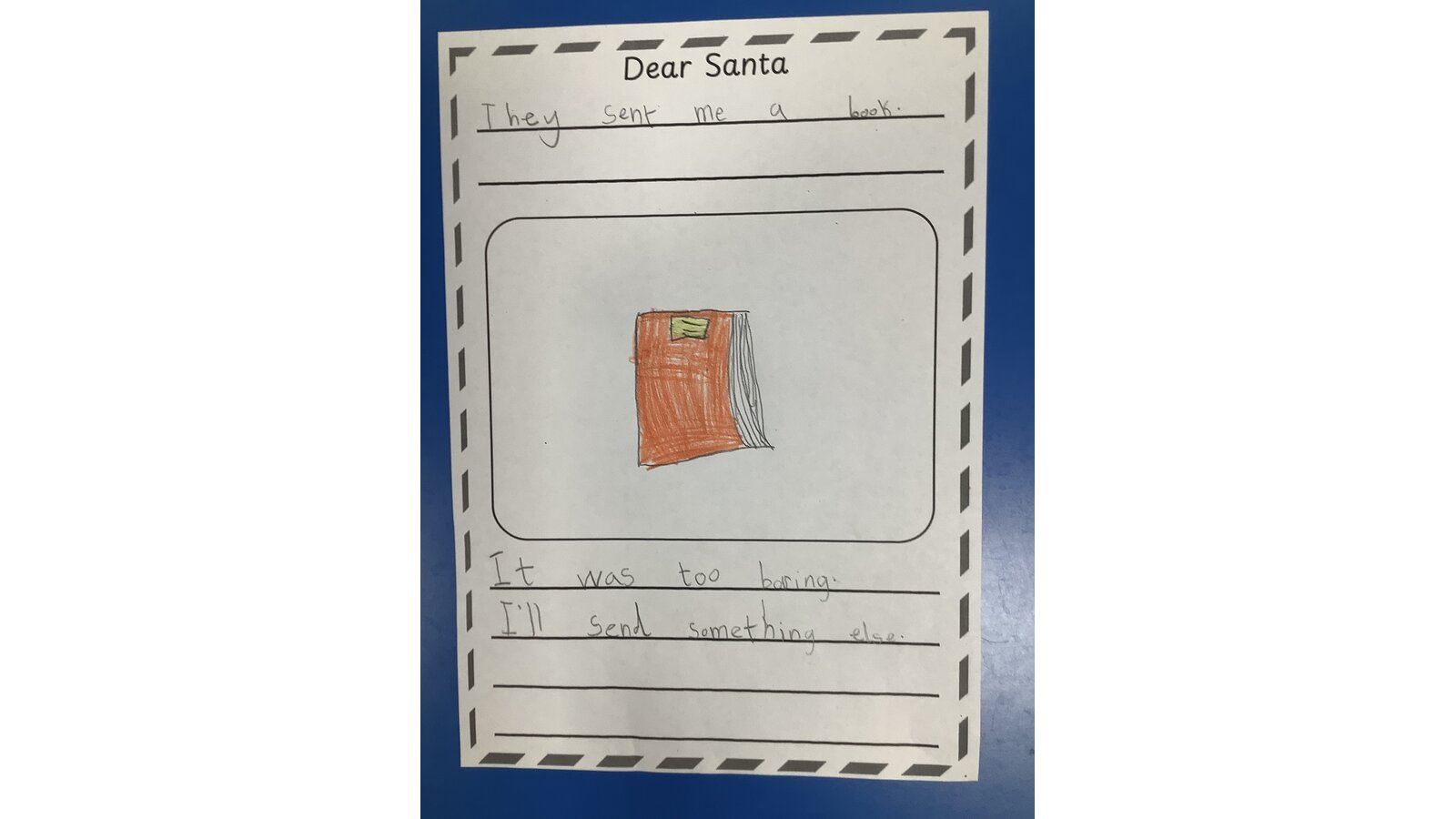 10 December 2025 Sarah Orgill Class 1 We used the story of “Dear Santa” to create our own pages for a class book. Previous Next English