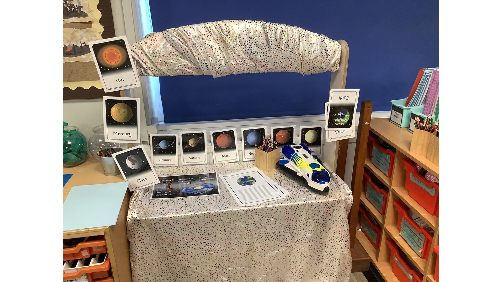 Our English text is “The Way Back Home” about meeting a new friend on the moon! We have had lots of exciting space-themed provision to explore!