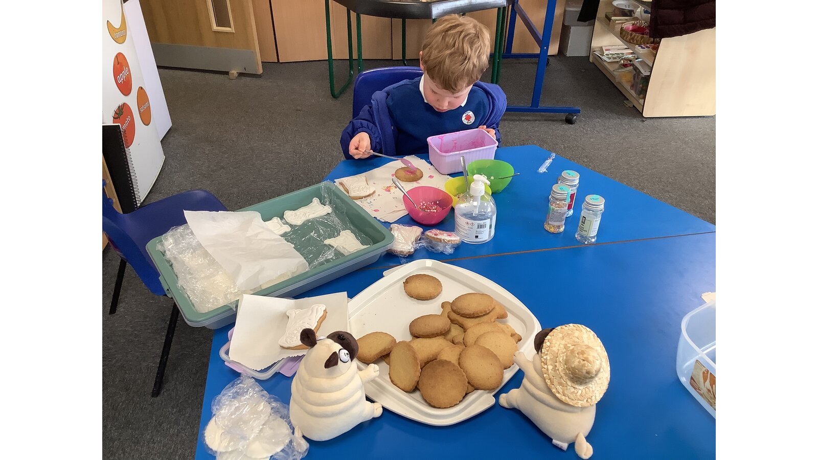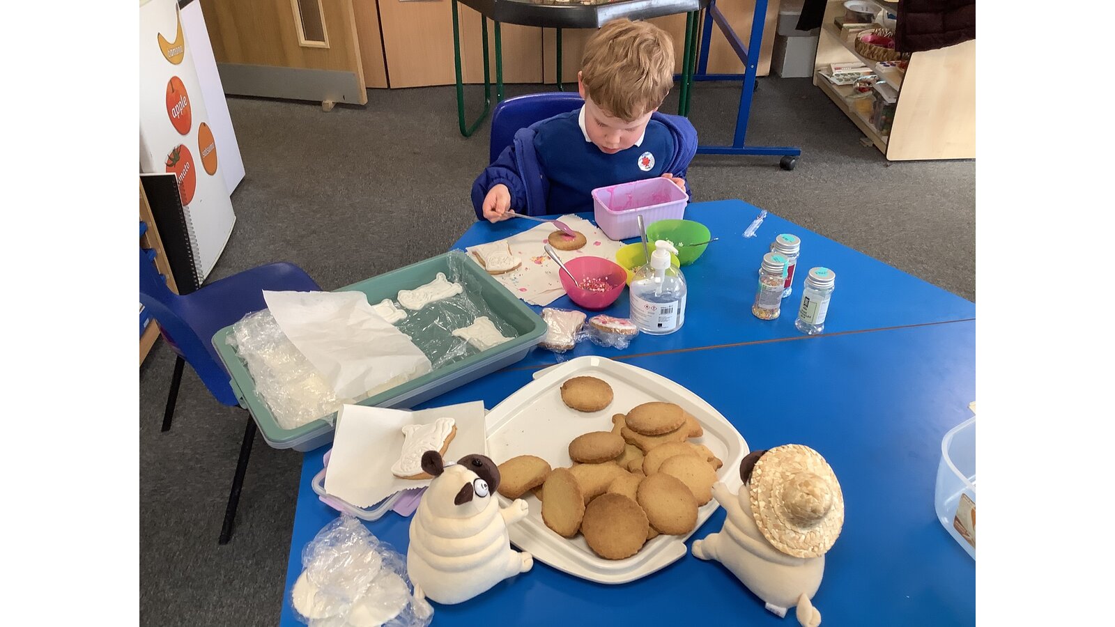 Pig the Pug watched us completed our final task for “Travelling Tales.” We decorated some special Pug biscuits ready for Ralph’s visit later this week!