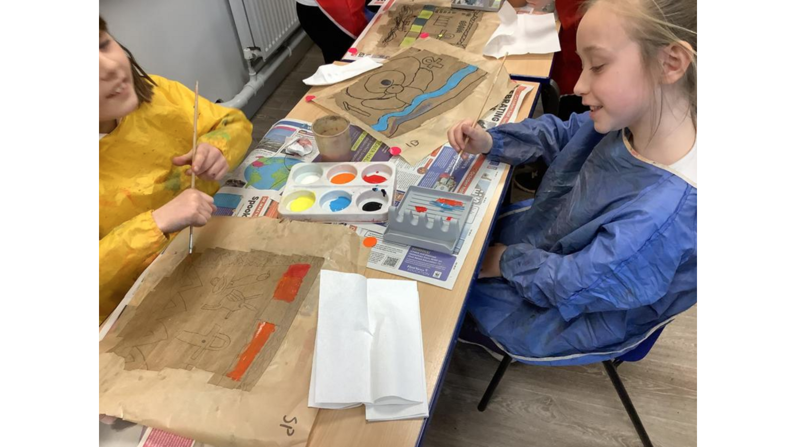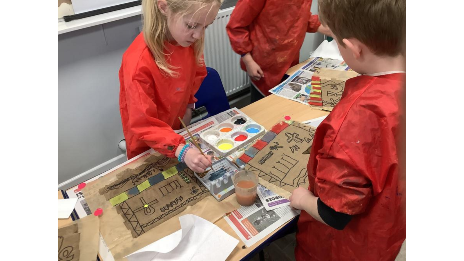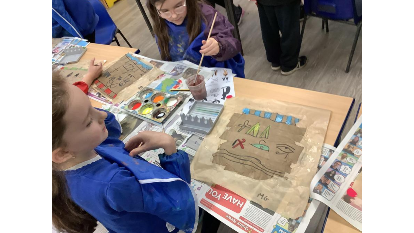 After making our papyrus paper, the children were able to use charcoal and paint to create their very own Ancient Egyptian style artwork.
