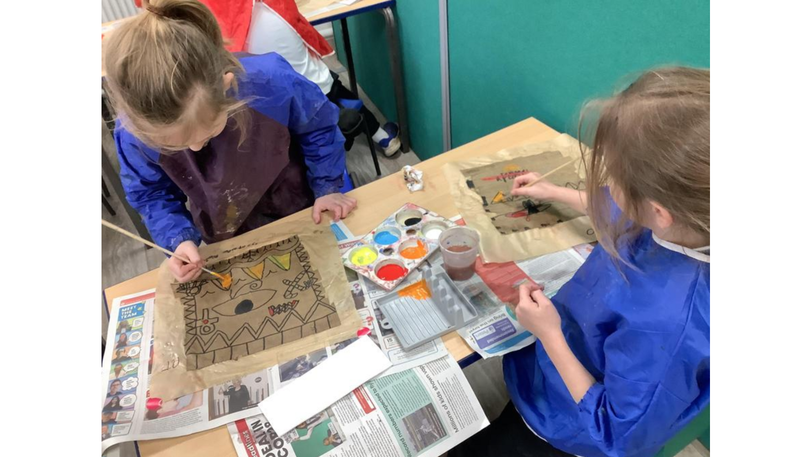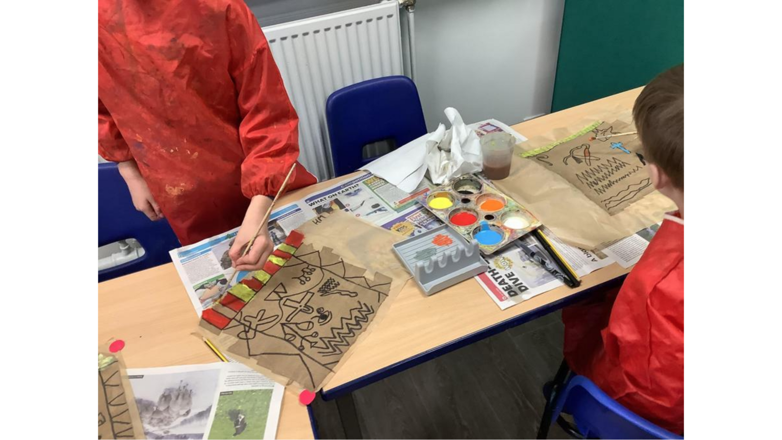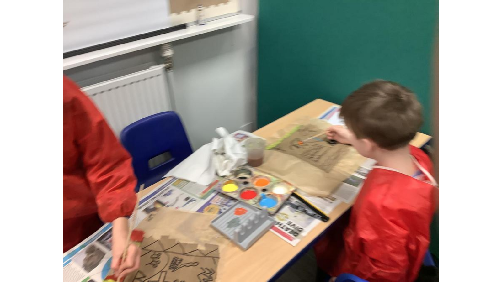 After making our papyrus paper, the children were able to use charcoal and paint to create their very own Ancient Egyptian style artwork.