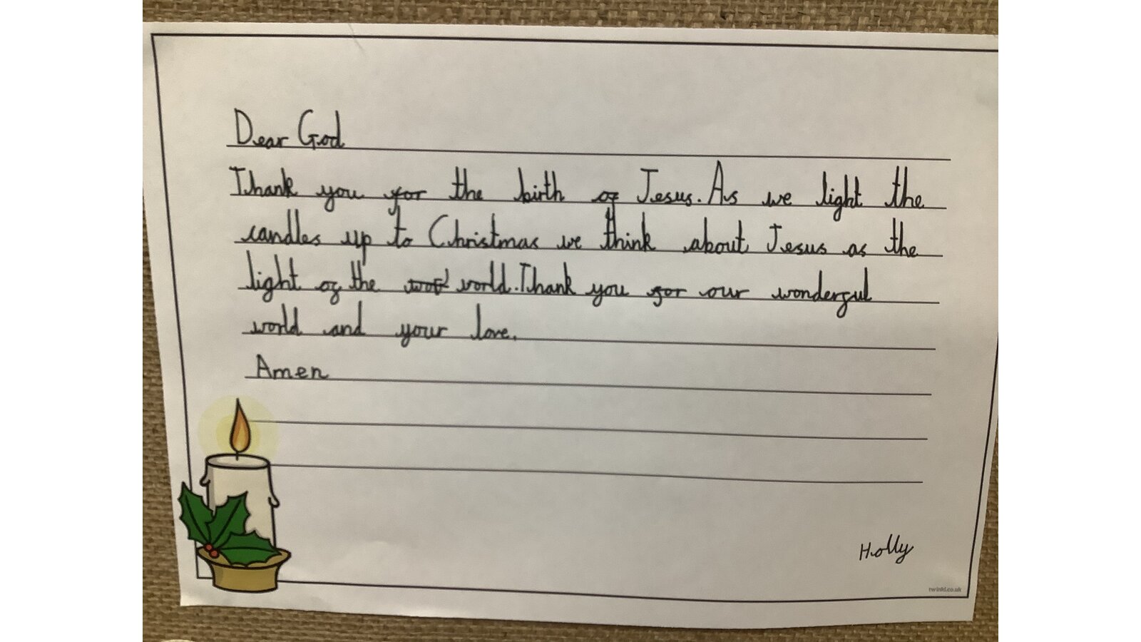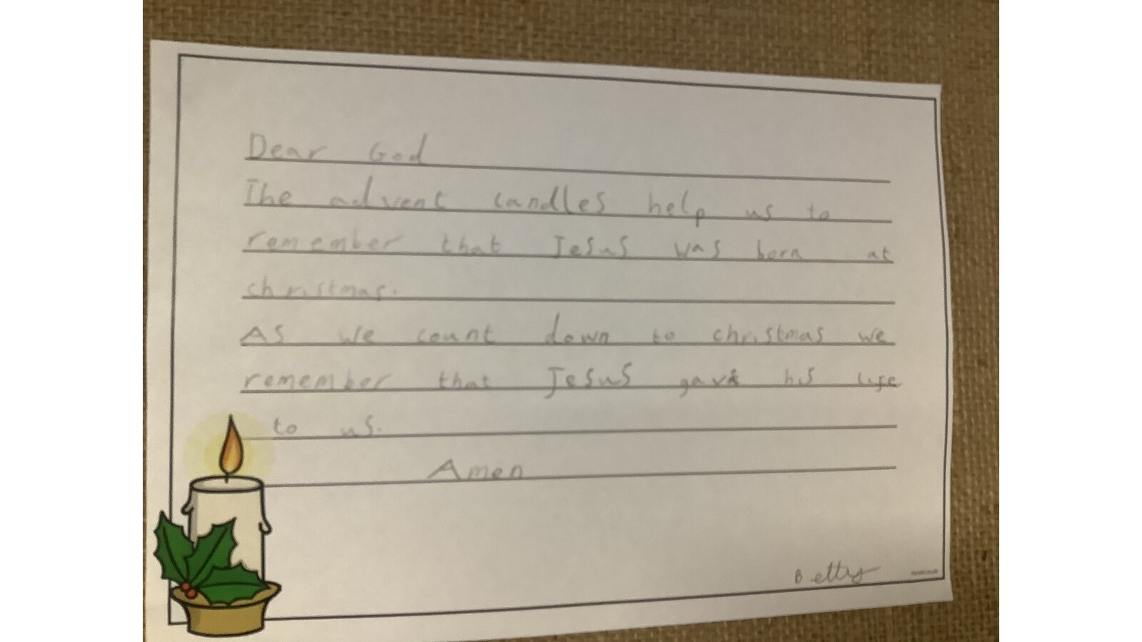 As part of our topic about festivals of light, we have been exploring the meaning and symbolism of Advent. We worked together to create our own Advent wreath and Year 2 wrote some fantastic Advent prayers.