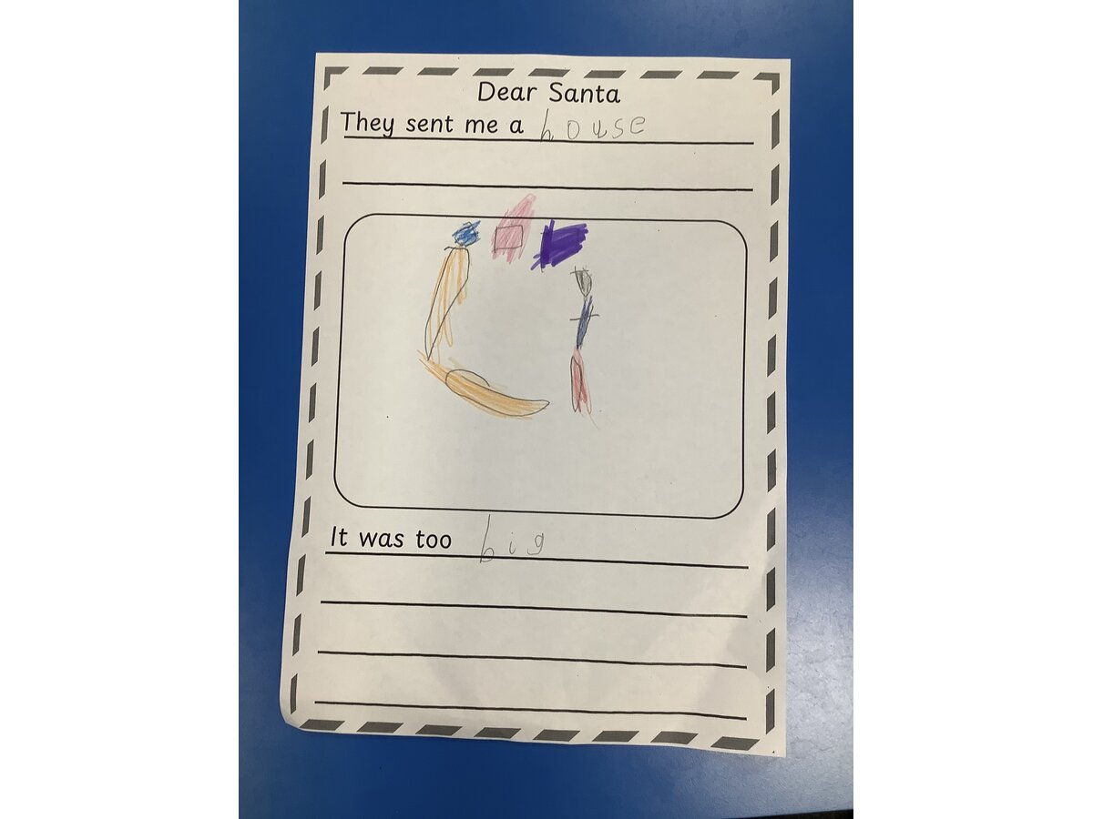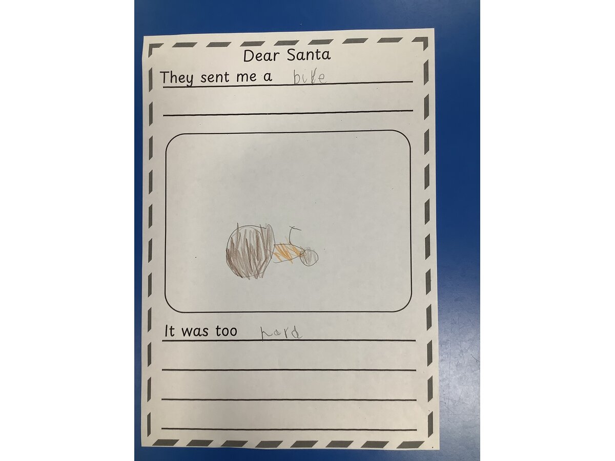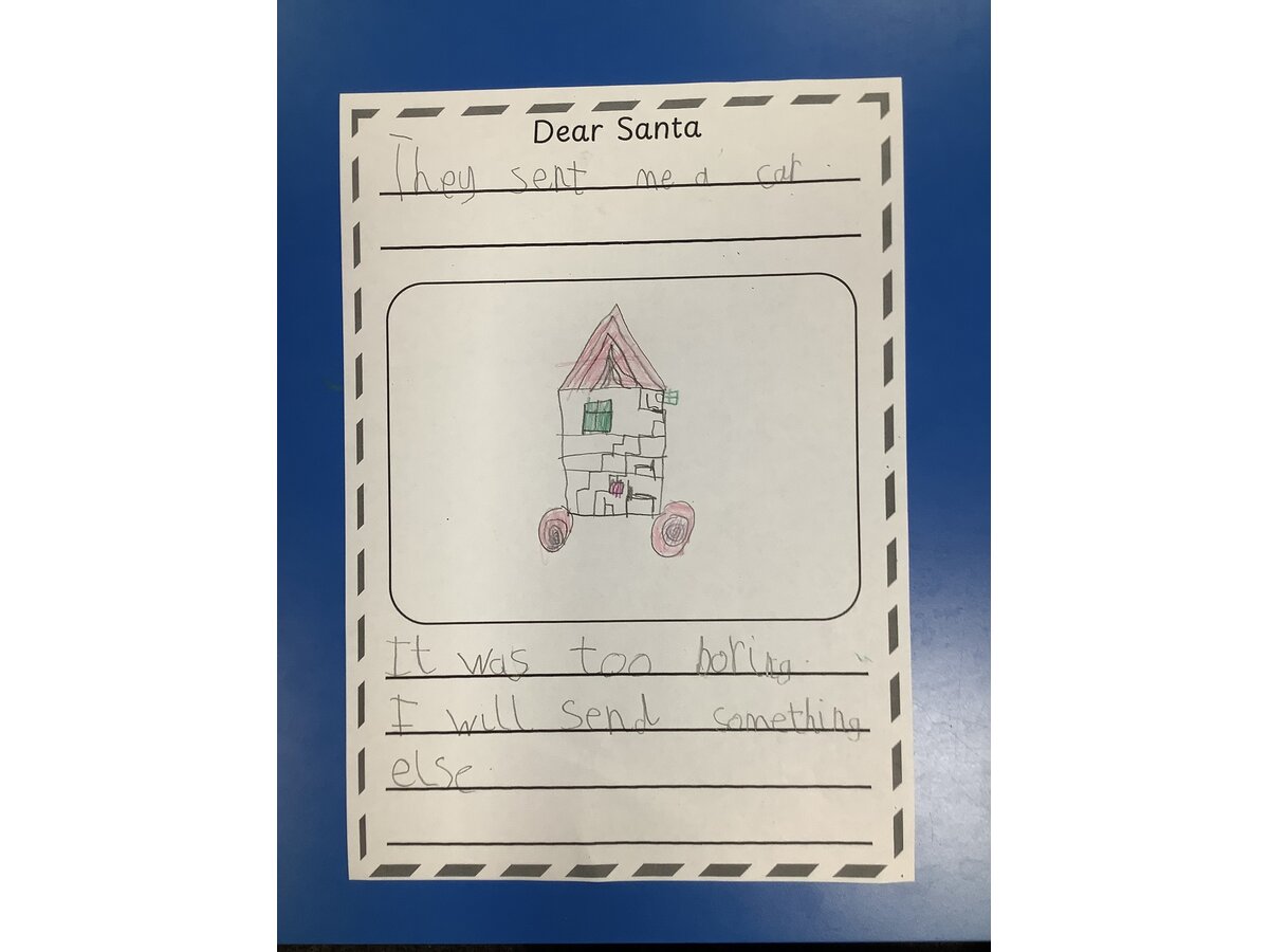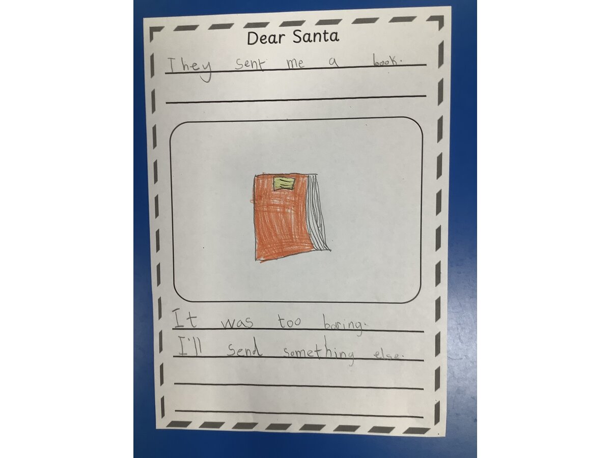 We used the story of “Dear Santa” to create our own pages for a class book.