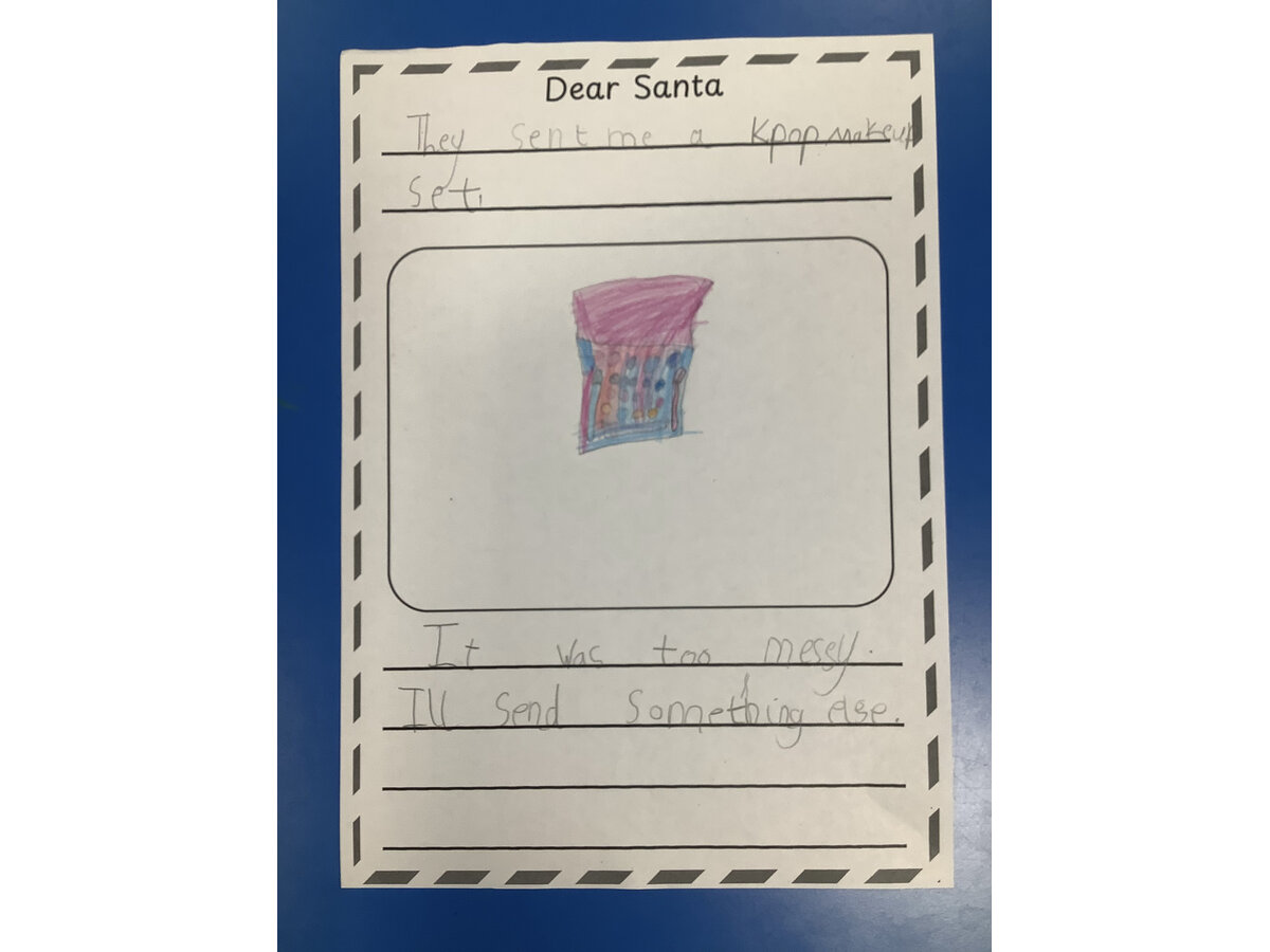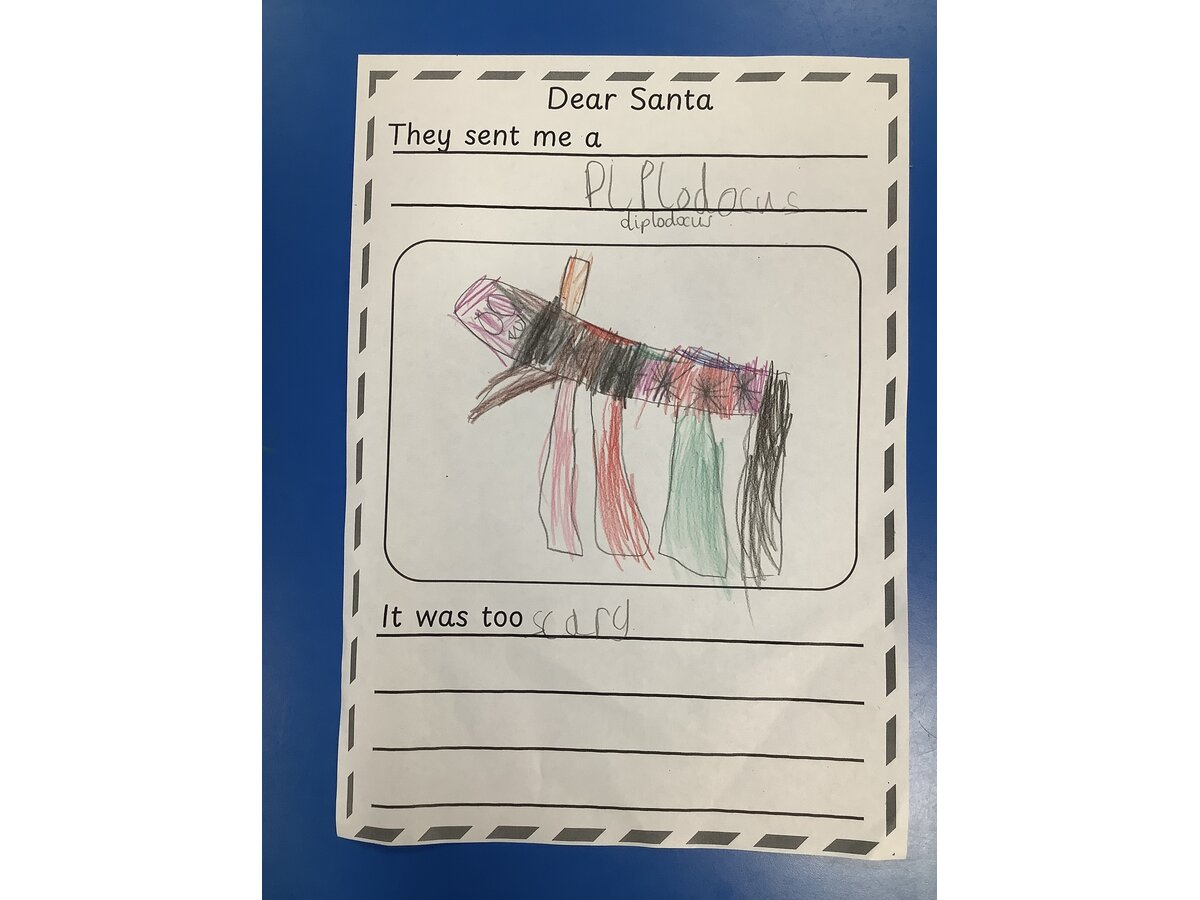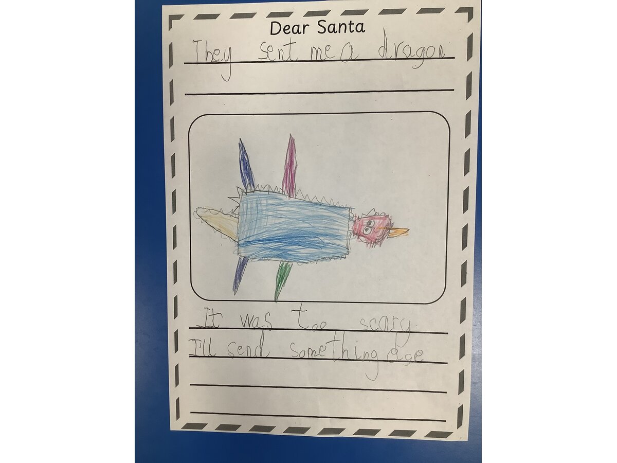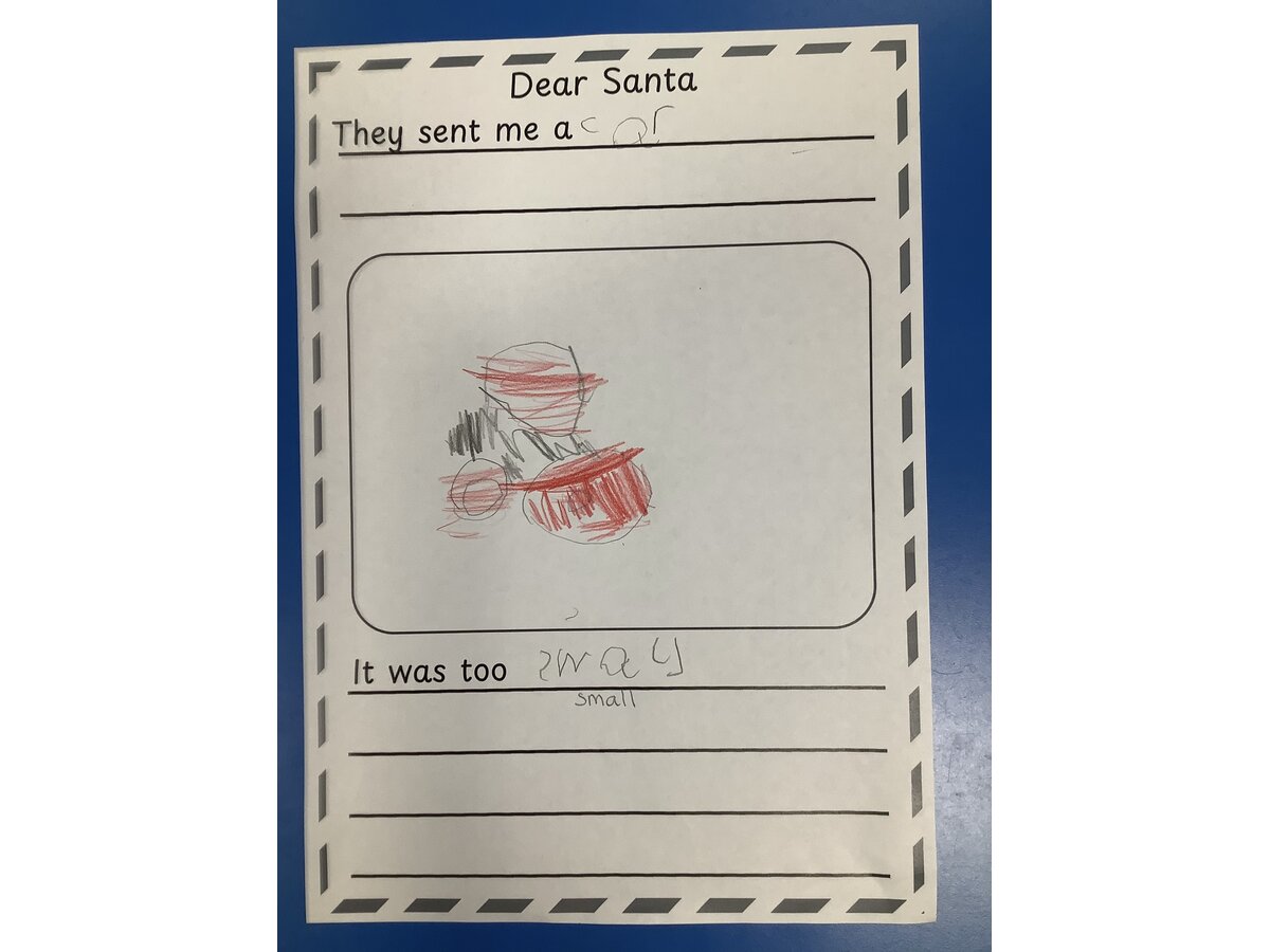 We used the story of “Dear Santa” to create our own pages for a class book.