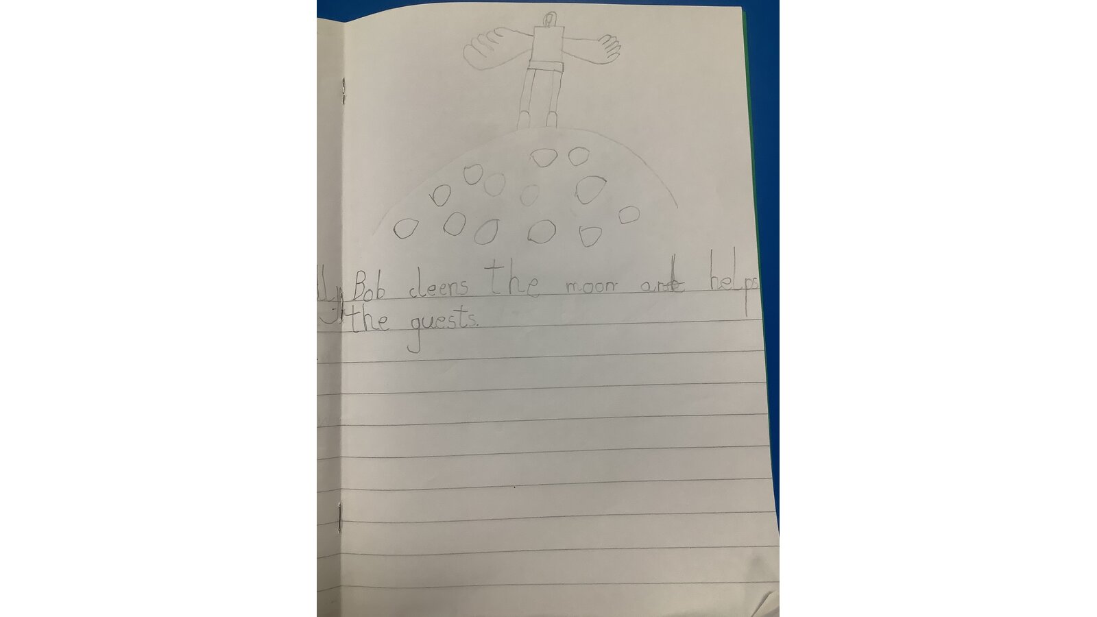 The children created a story map of Man on the Moon to explain Bob’s busy day. Then Reception wrote sentences about Bob, segmenting and blending sounds to help with spelling.