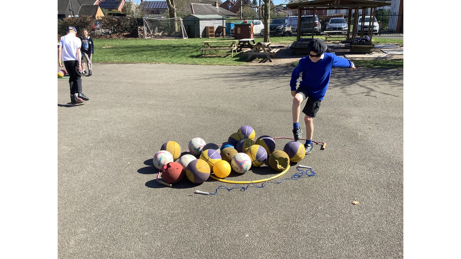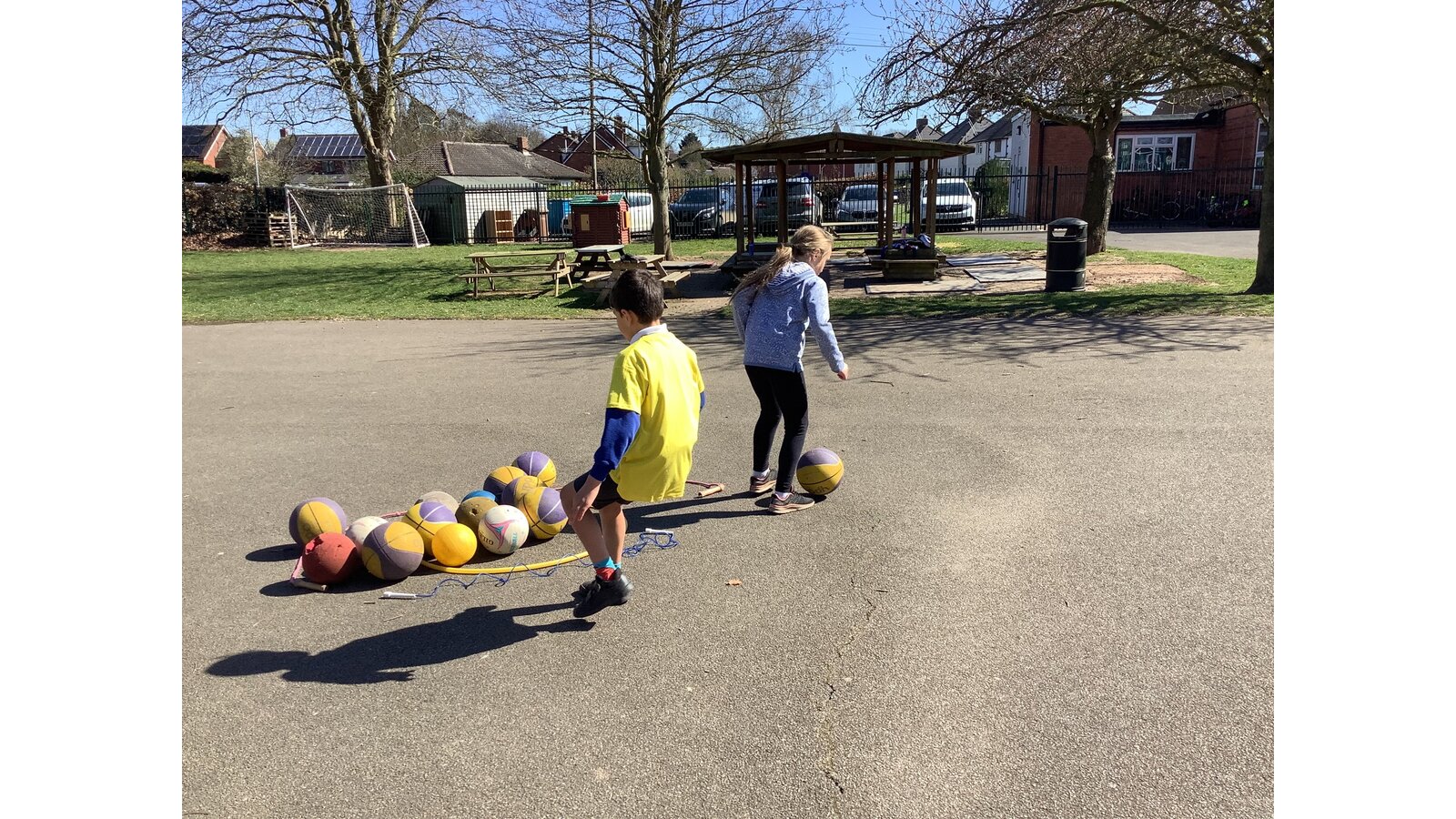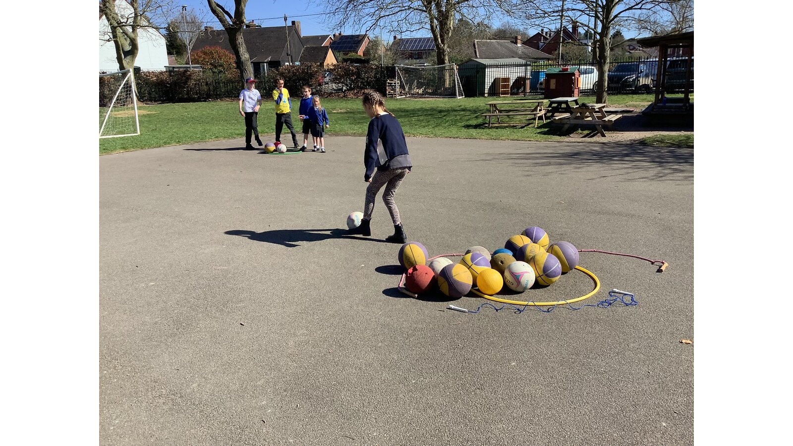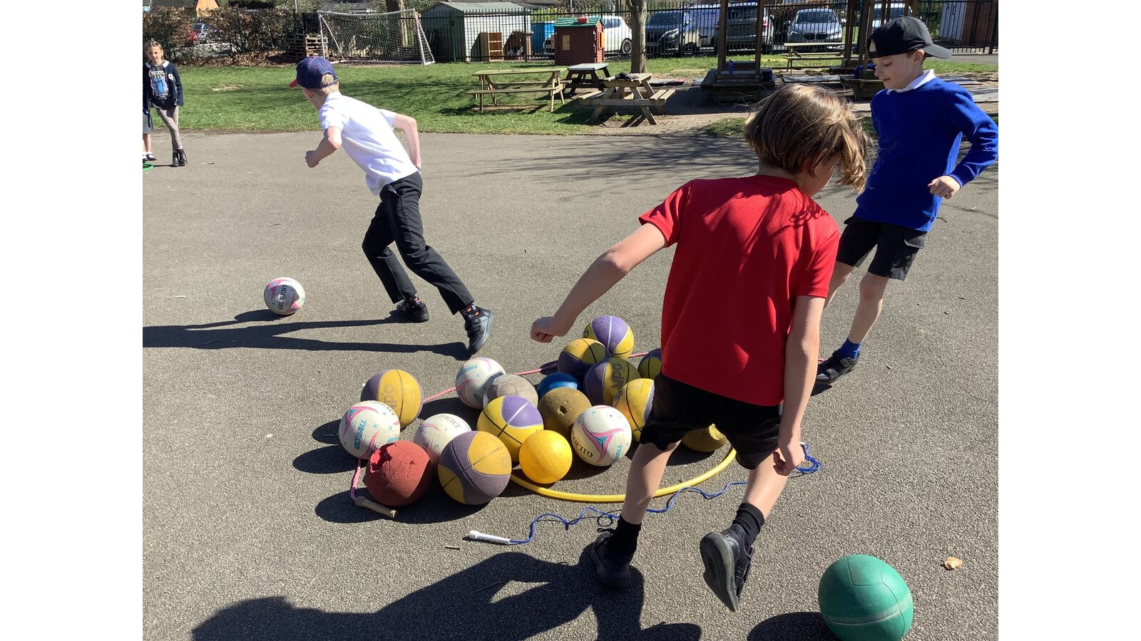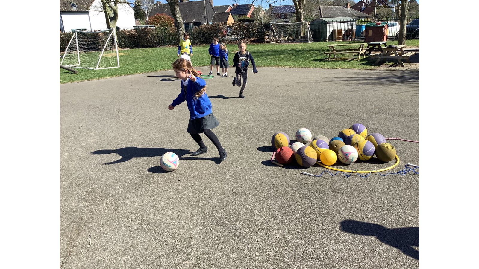 Mary Howard’s first activity for football week focused on dribbling practice. Each team ran into the middle and dribbled a ball back to their team box. Only one team member could enter the box at a time and take one all from the centre. They had to high five their team mate who could then go and get the next ball for their team. Once all of the balls were gone from the centre, the children could steal from other teams! Well done to our winning team who had the most amount of balls. #SchoolsFootballWeek #SFW2025